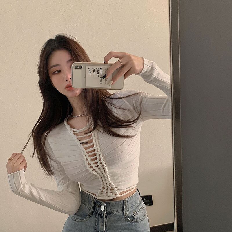 ストラップ ホワイトショートニットセーター オータムスリムフィット薄手トップス 秋物 10/5 秋冬 オータム ウインター ナチュラル mi4679657947229