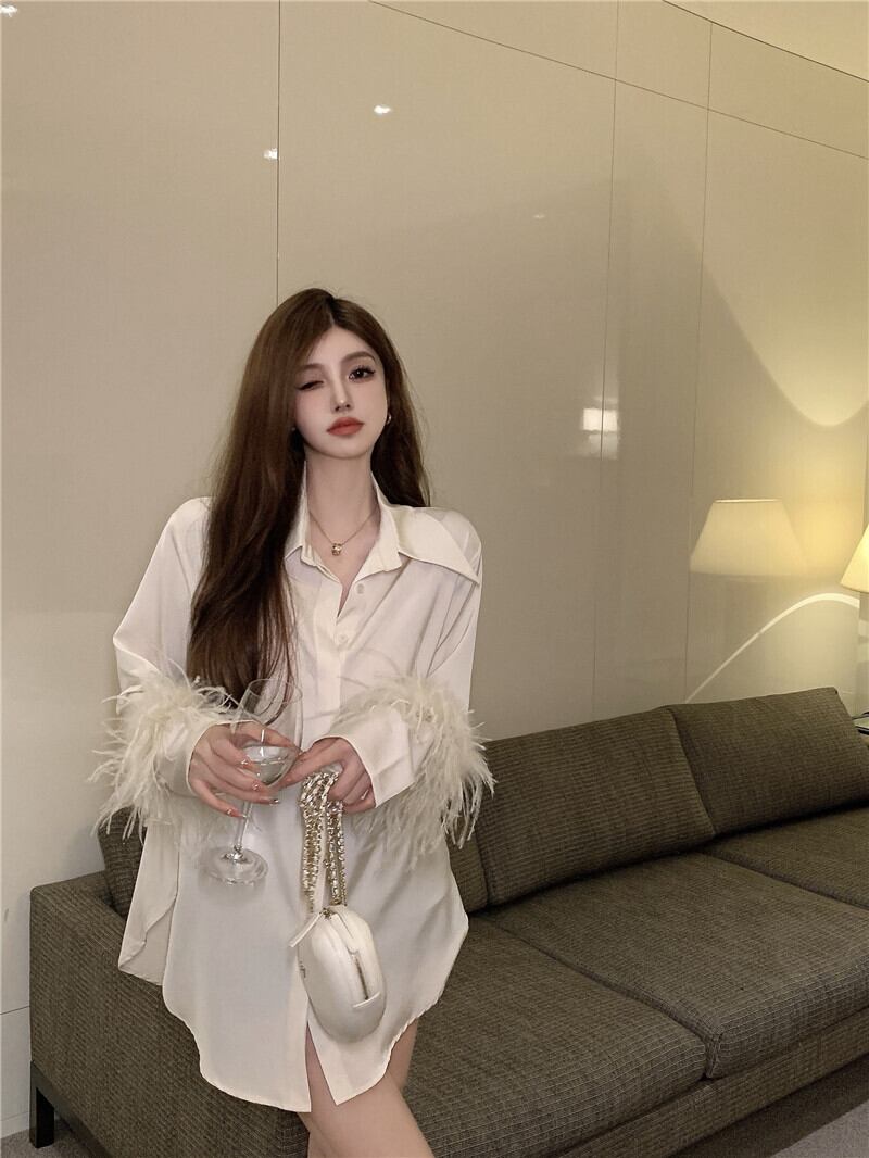 サテンシャツ オータムルーズトップス ふわふわ 秋物 ステッチ 10/5 秋冬 オータム ウインター ナチュラル mi463449243160