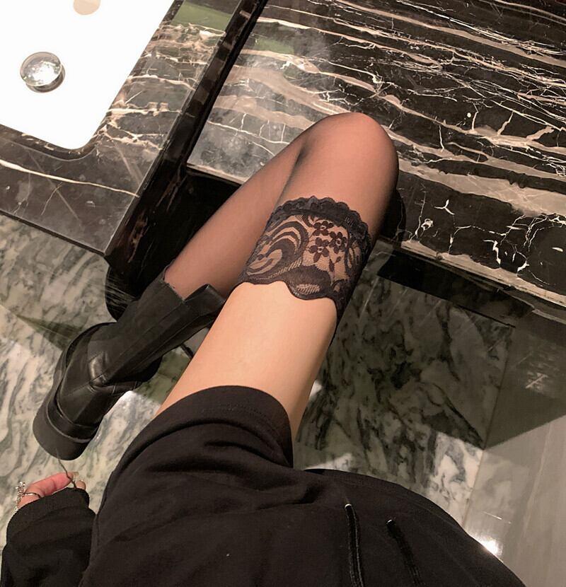 レッド薄手ブラックストッキング オータムレースソックス 秋物 タイツ 10/5 秋冬 オータム ウインター ナチュラル mi4694657445021