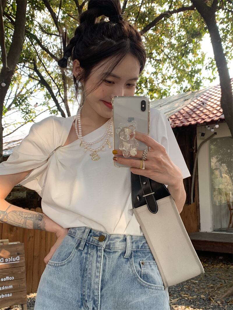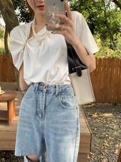 メタルバックルホワイトTシャツ シャツ サマールーズ 夏物 10/5 秋冬 オータム ウインター ナチュラル mi4633722027102