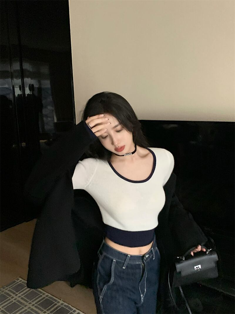 カラーニットセーター オータムウィンタースリムフィット薄手シャツ ショートトップス ロング 秋物 冬物 10/5 秋冬 オータム ウインター ナチュラル mi4641013067677