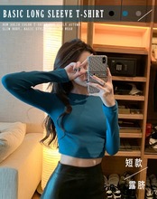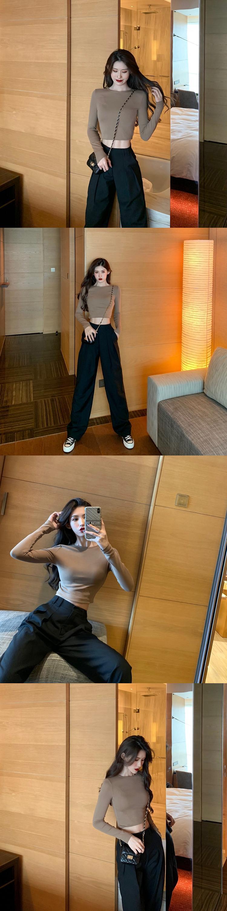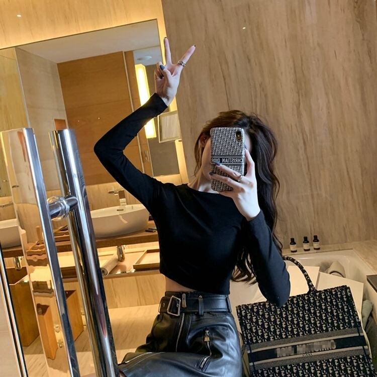 ブラックスリムショートトップス シャツ オータムハイウェストウェスト長袖スリーブTシャツ ロング 秋物 10/5 秋冬 オータム ウインター ナチュラル mi4616899093058