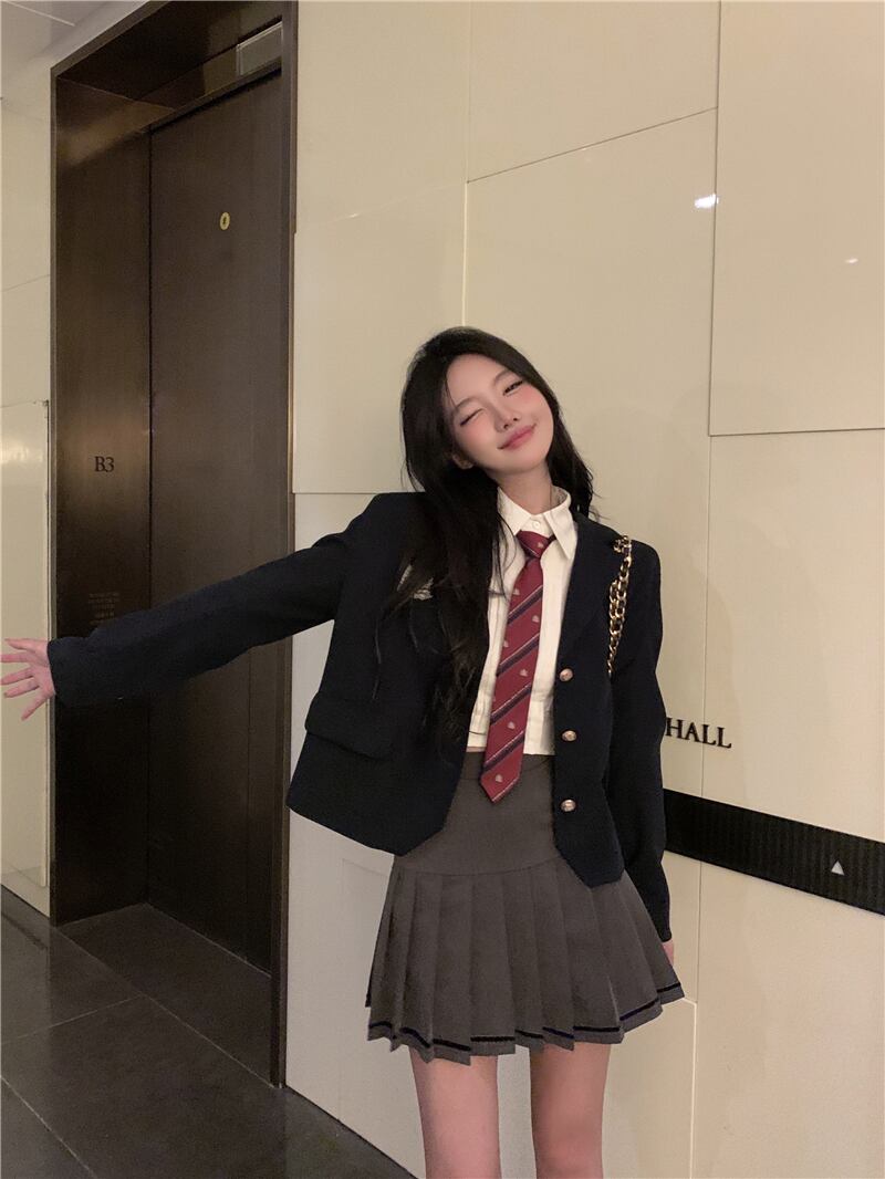 色:スーツ一枚,シャツ一枚,シングルプリーツスカート