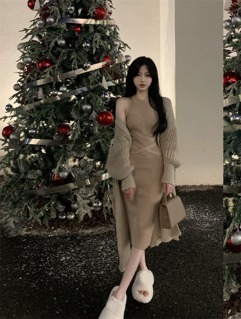 色:ワンピースホルターネックロングワンピース,セーターカーディガンワンピース
