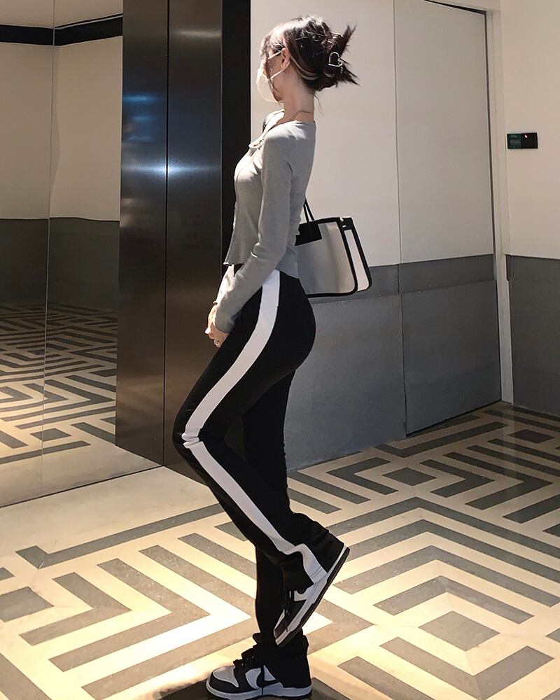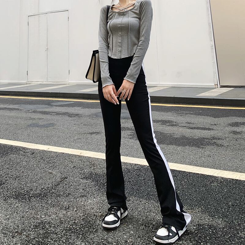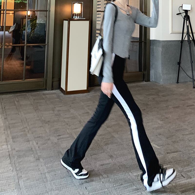 ストライプパンツ オータムウィンターハイウェストウェストスリムカジュアル 秋物 冬物 10/5 秋冬 オータム ウインター ナチュラル mi4665445819088