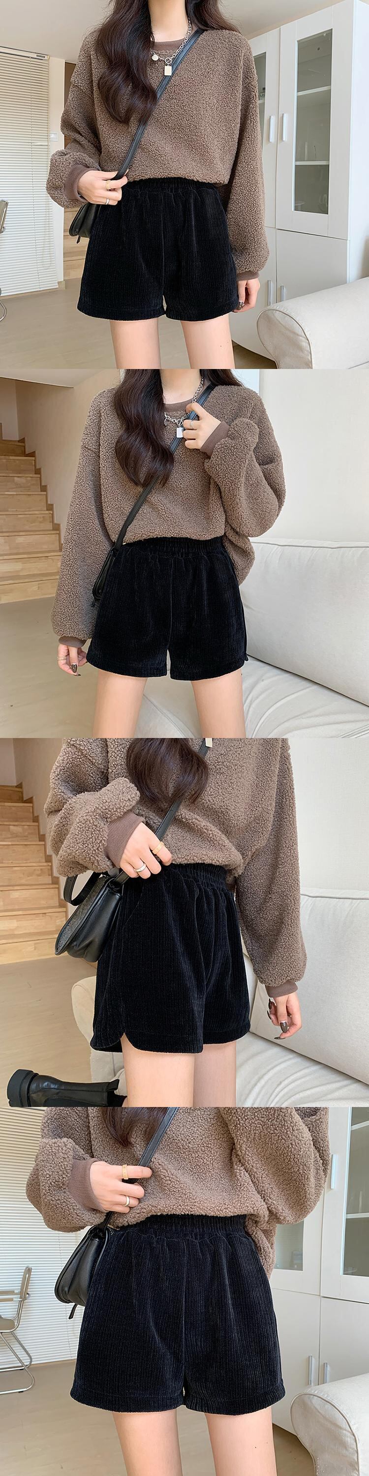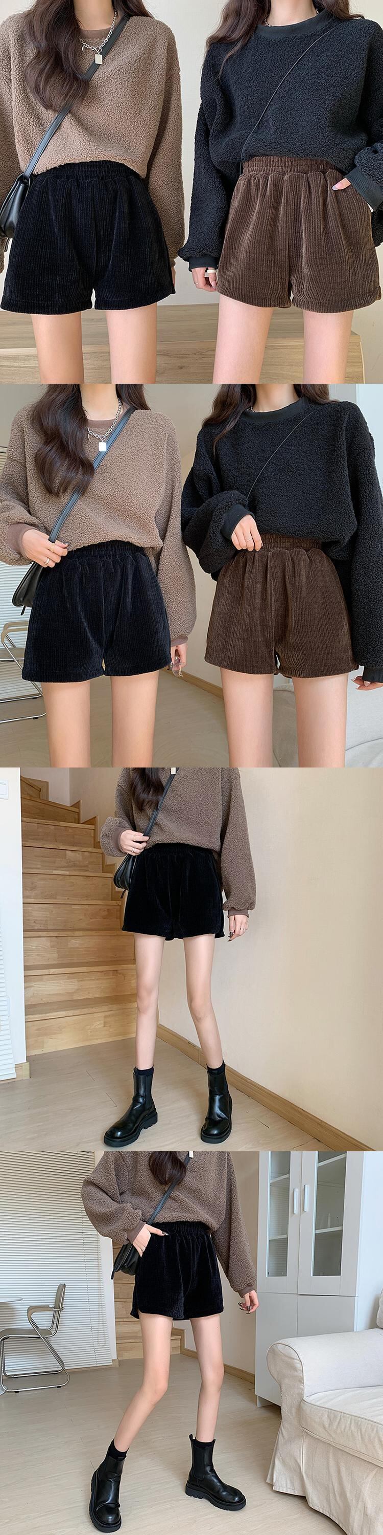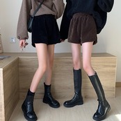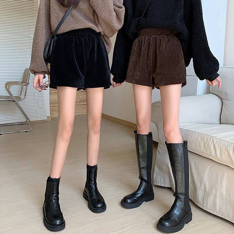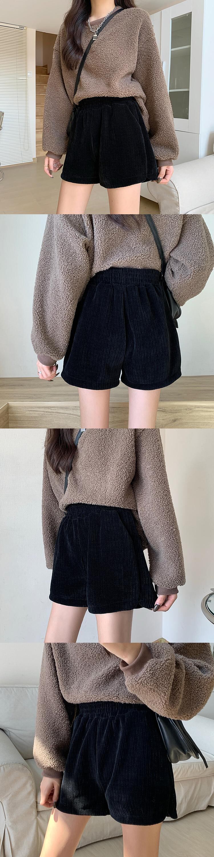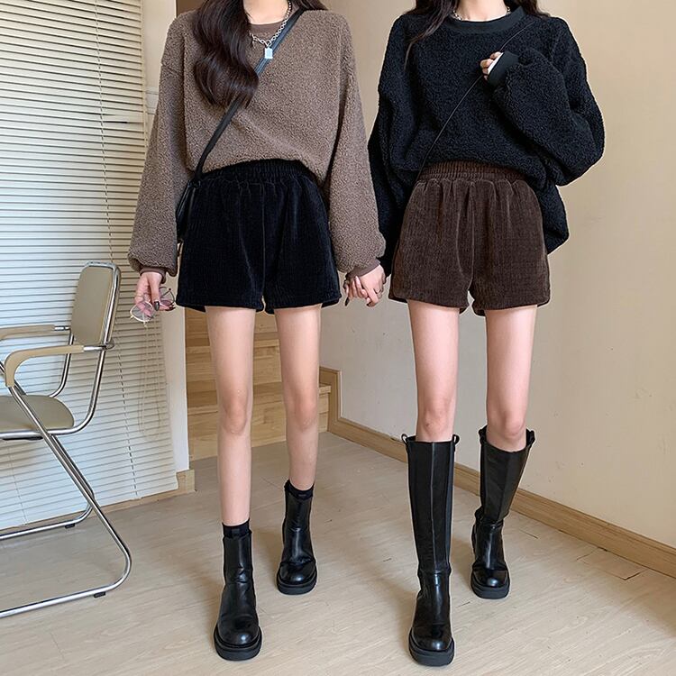 ブラックコーデュロイショーツ オータムパンツ ハイウェストウェスト 秋物 ブルマー 10/5 秋冬 オータム ウインター ナチュラル mi4697718425033