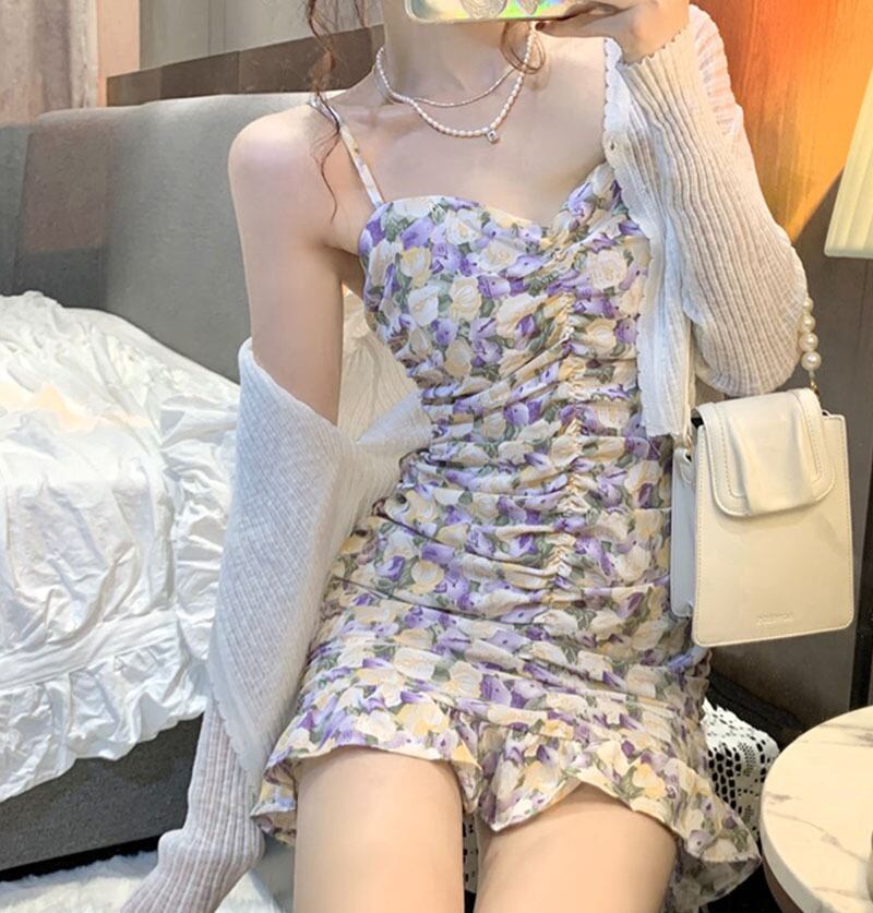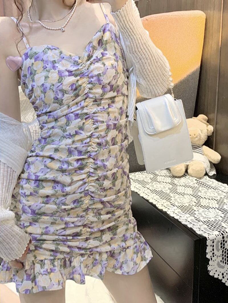 フローラルドレス オータムプリーツウェスト薄手スカート 秋物 花柄 パープル 10/5 秋冬 オータム ウインター ナチュラル mi462323135686