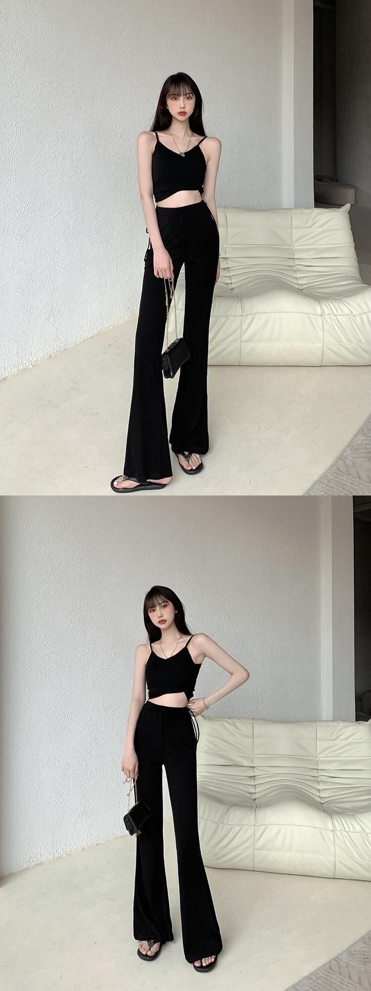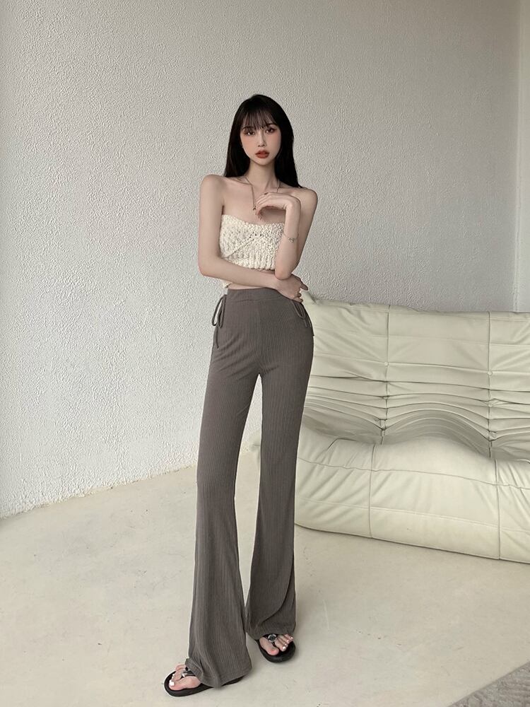 薄手ストライプカジュアルパンツ ハイウェストスリム レッド レース レースアップ 10/5 秋冬 オータム ウインター ナチュラル mi4687771381431