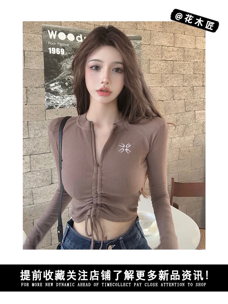 カーキTシャツ シャツ オータムギャザー薄手ショートトップス ロング 秋物 10/5 秋冬 オータム ウインター ナチュラル mi4664526452845