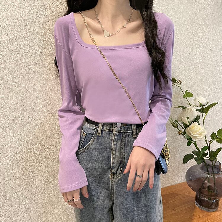 ブルーTシャツ オータムカラースリムフィット薄手ショートトップス ロング 秋物 スクウェア 10/5 秋冬 オータム ウインター ナチュラル mi468386297141