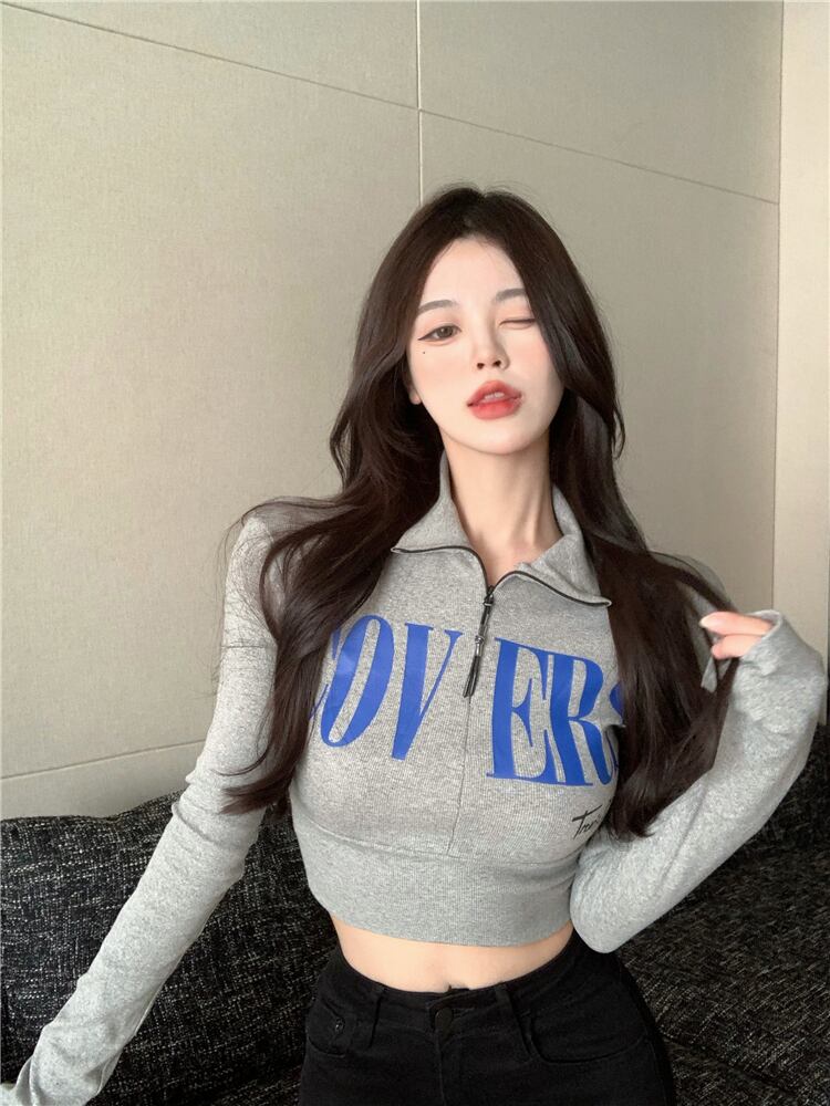 ジッパープリントTシャツ オータムショートトップス ロング 秋物 10/5 秋冬 オータム ウインター ナチュラル mi4638531251402
