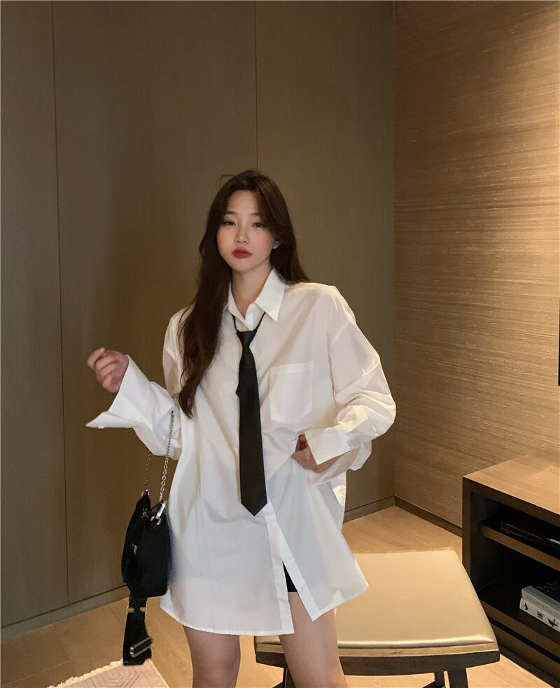 スタイルシャツ オータムルーズホワイトトップス ロング 大人ガーリー スウィート キュート カジュアル 秋物 10/5 秋冬 オータム ウインター ナチュラル mi463181204997