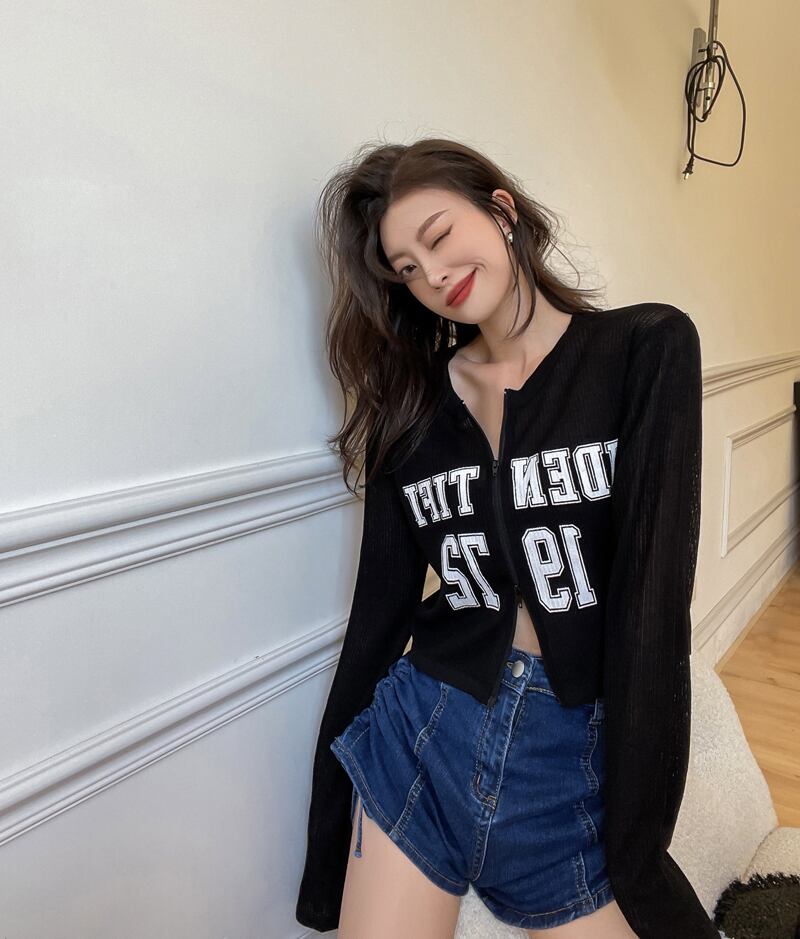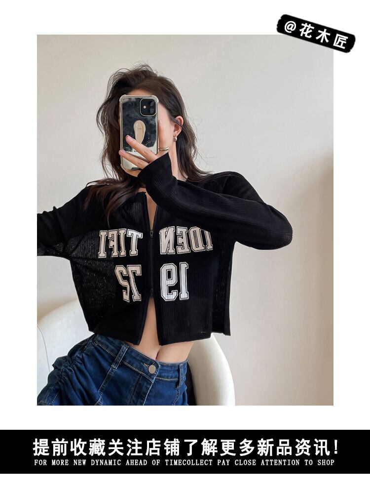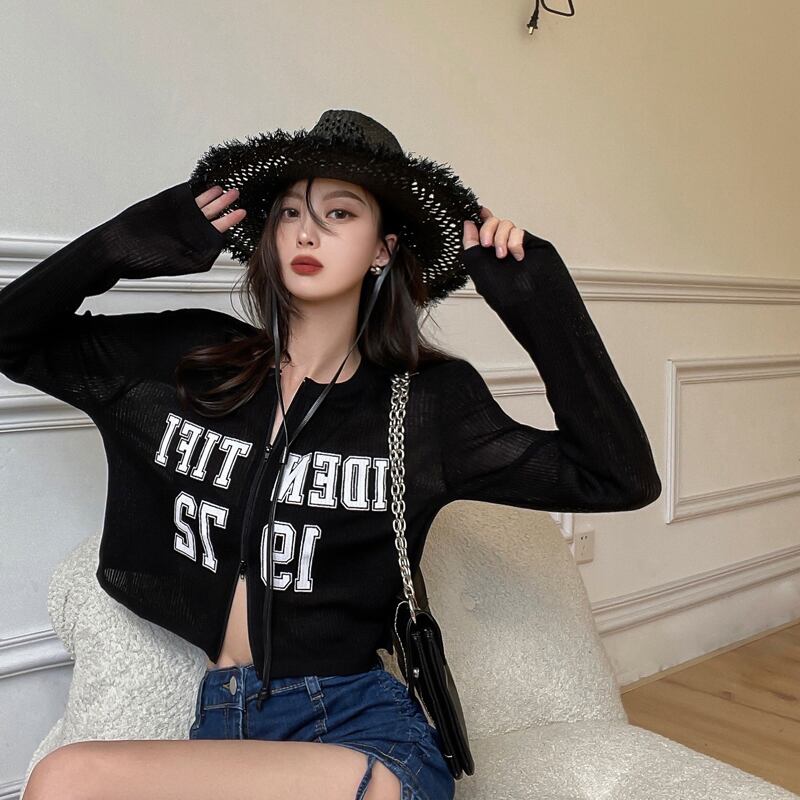 ブラックニットTシャツ オータム薄手プリント柄ショートカーディガントップス ロング 秋物 10/5 秋冬 オータム ウインター ナチュラル mi4651666792235