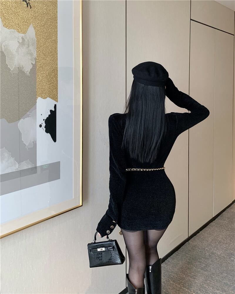 ブラックVネックドレス オータムウィンターウェストスカート ロング 秋物 冬物 10/5 秋冬 オータム ウインター ナチュラル mi4670632272080