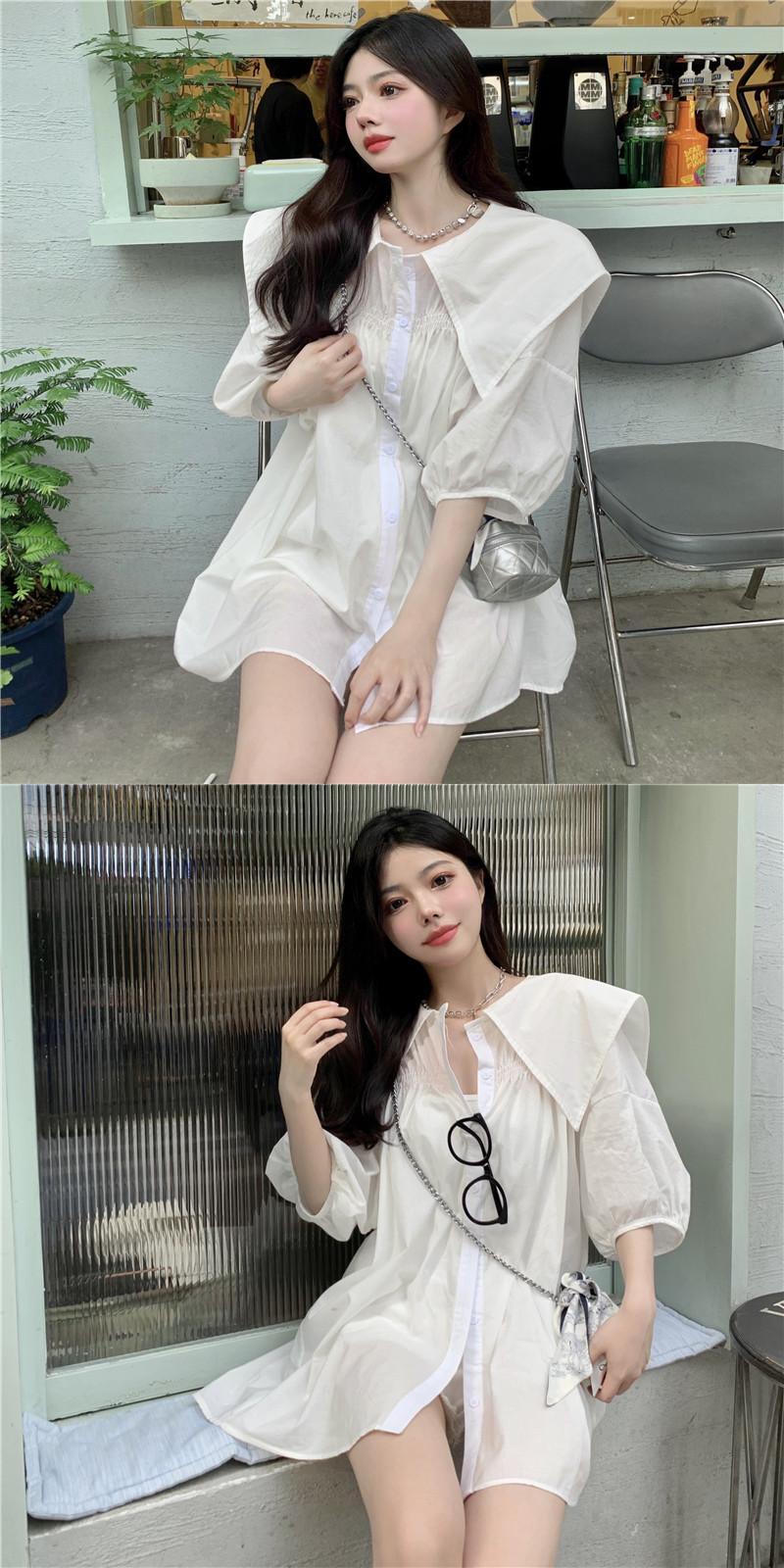 カラーシャツ ドレス サマールーズ薄手スカート ランタンスリーブ 夏物 10/5 秋冬 オータム ウインター ナチュラル mi4669583797361