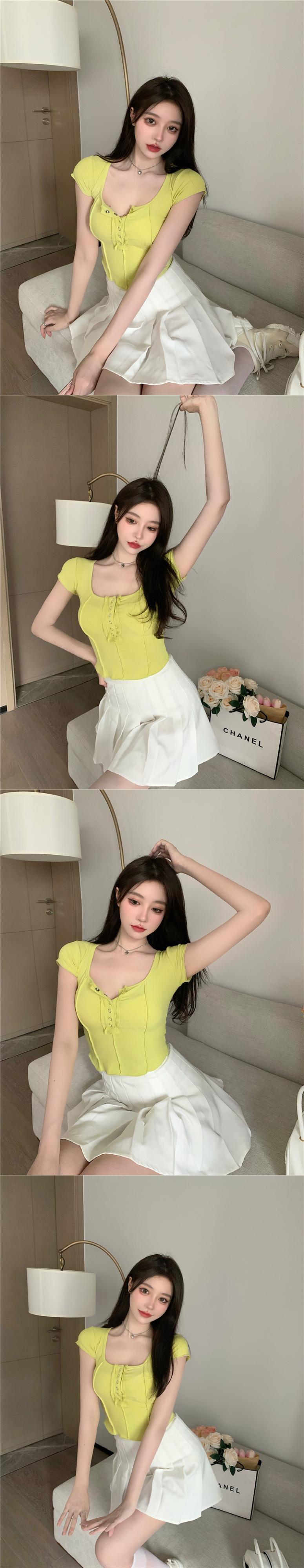 カラーショートTシャツ オータムスリムトップス ピンク 大人ガーリー スウィート キュート カジュアル 秋物 スクウェア 10/5 秋冬 オータム ウインター ナチュラル mi4639237888322