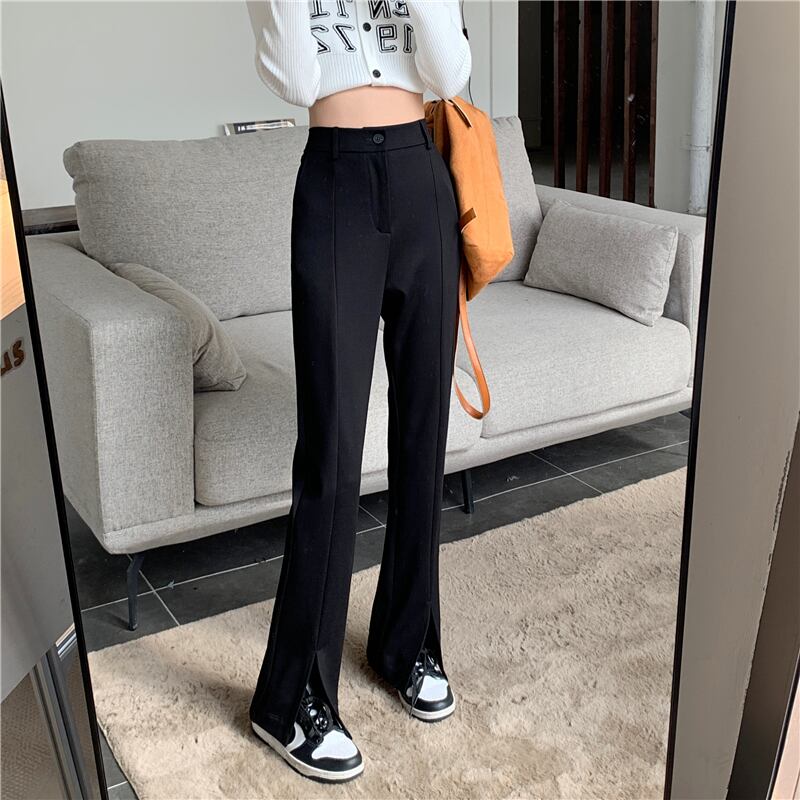 ブラックスリットカジュアルパンツ オータムルーズハイウェストウェストスリム レッド 秋物 10/5 秋冬 オータム ウインター ナチュラル mi4652886237310