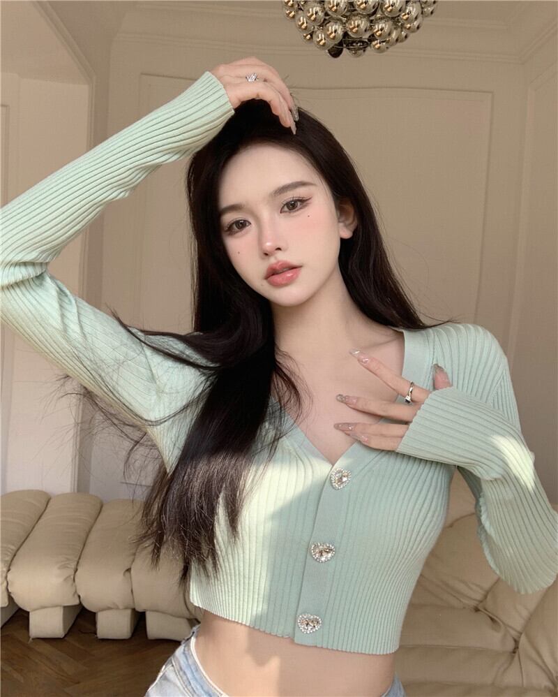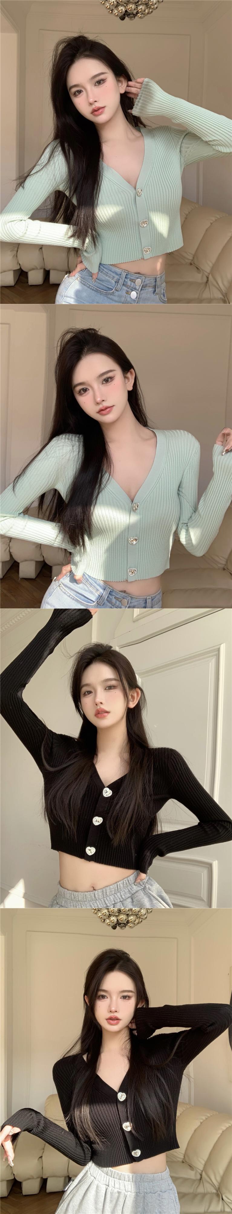 ボタンVネックニットカーディガンオータムスリムショートトップス 秋物 10/5 秋冬 オータム ウインター ナチュラル mi4671488916048