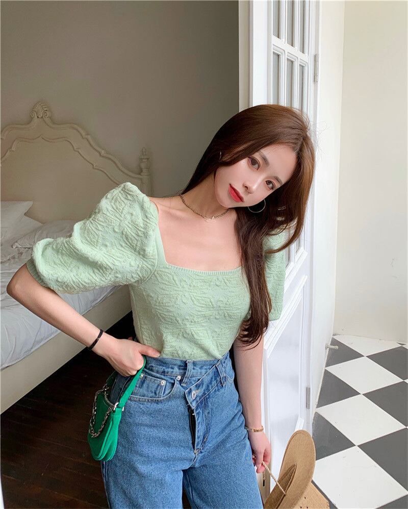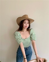 グリーンスリーブニットセーター オータムジャカードショートスリムトップス 秋物 スクウェア 10/5 秋冬 オータム ウインター ナチュラル mi4680690353660