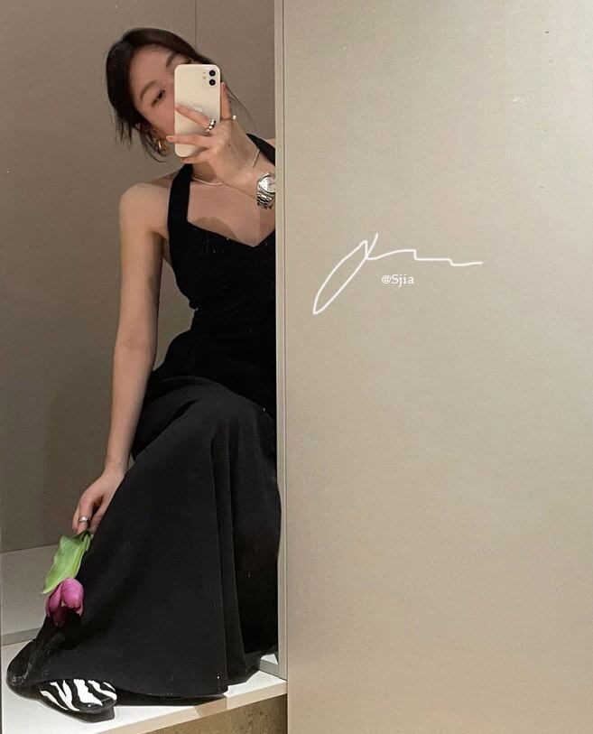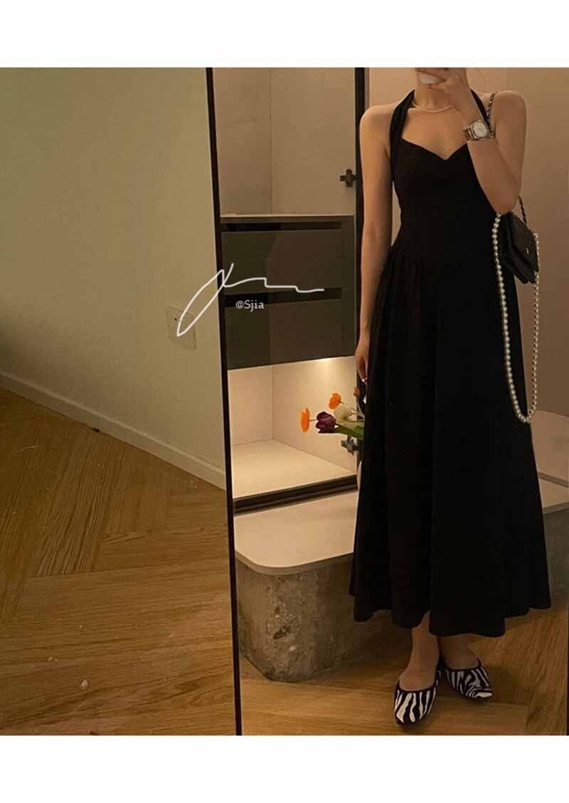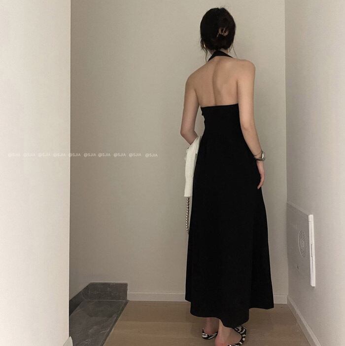 Vネックブラックホルタードレス サマーバックレスウェストAラインスカート 夏物 10/5 秋冬 オータム ウインター ナチュラル mi4627577922228