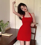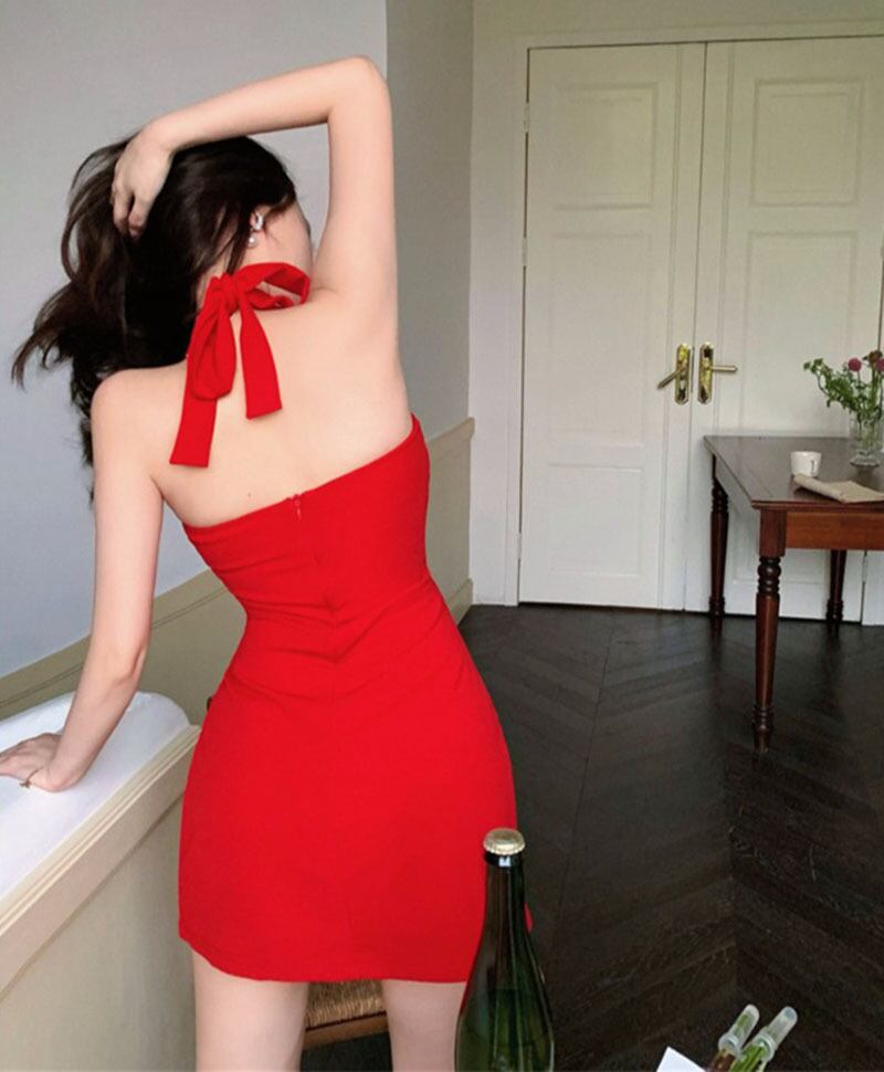 レッドホルタードレス サマースタイルストラップレスウェストスリムスカート 夏物 10/5 秋冬 オータム ウインター ナチュラル mi4666684348190