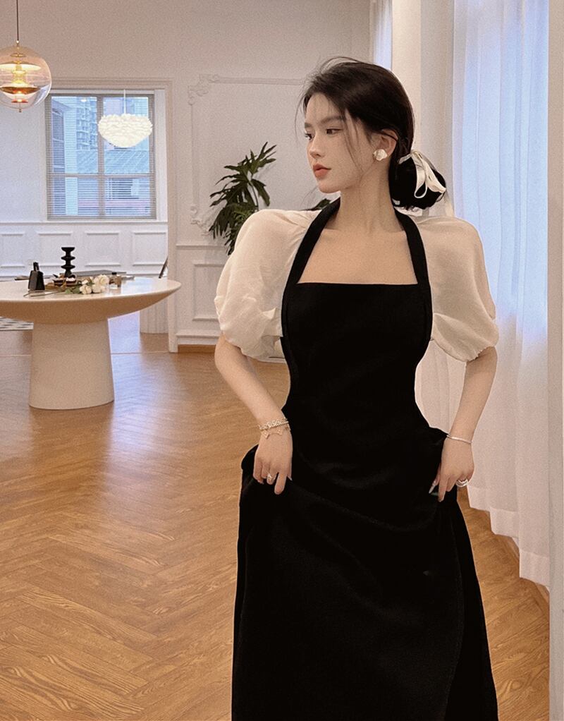 スリーブドレス サマースタンダードウェストAラインスカート レトロ 夏物 スクウェア 10/5 秋冬 オータム ウインター ナチュラル mi4620399154456