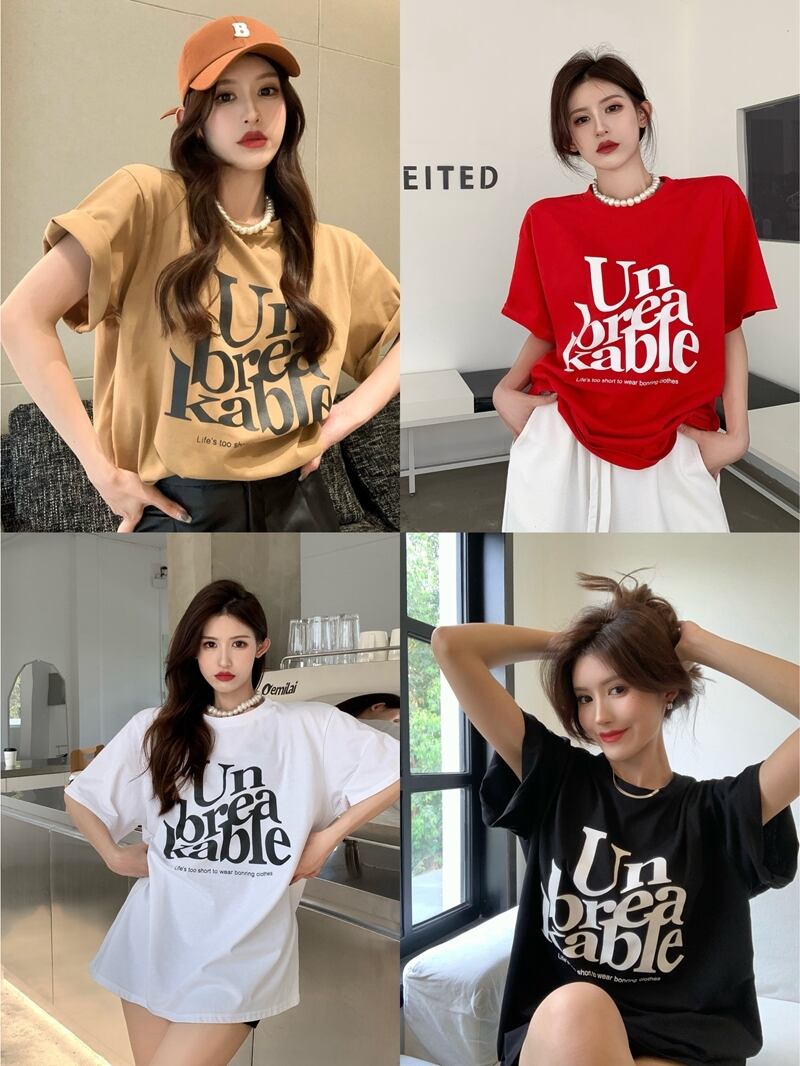 スタイルプリント柄レッドTシャツ サマールーズトップス 夏物 10/5 秋冬 オータム ウインター ナチュラル mi465543941312