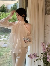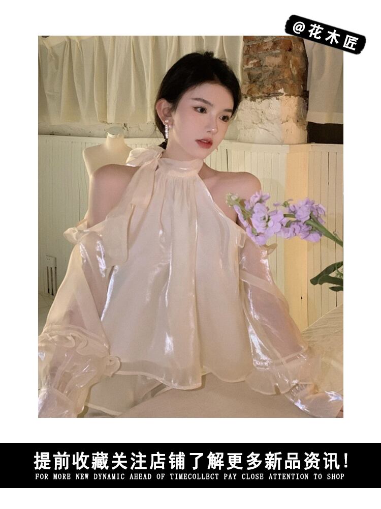 シャツ オータムリボン薄手トップス ロング レース 秋物 レースアップ 10/5 秋冬 オータム ウインター ナチュラル mi4663947222371