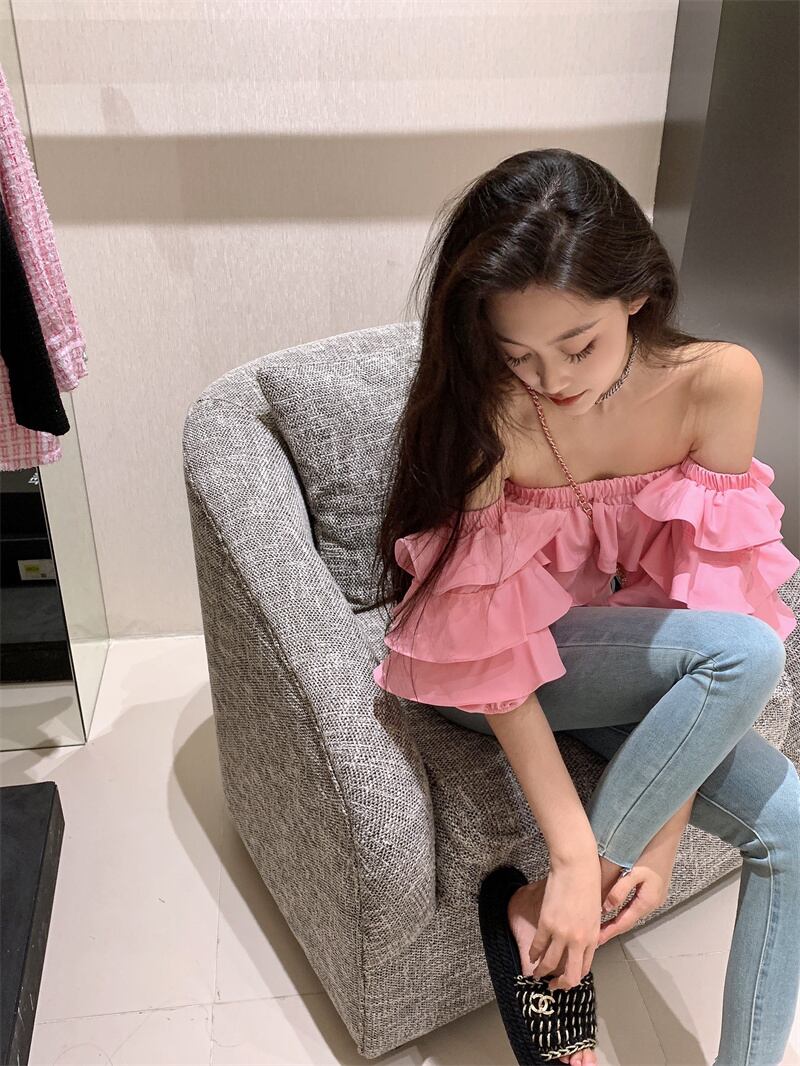 ラッフル半袖スリーブワンショルダーシャツ サマースタイルトップス ショート ハーフスリーブ 夏物 10/5 秋冬 オータム ウインター ナチュラル mi4696502597761