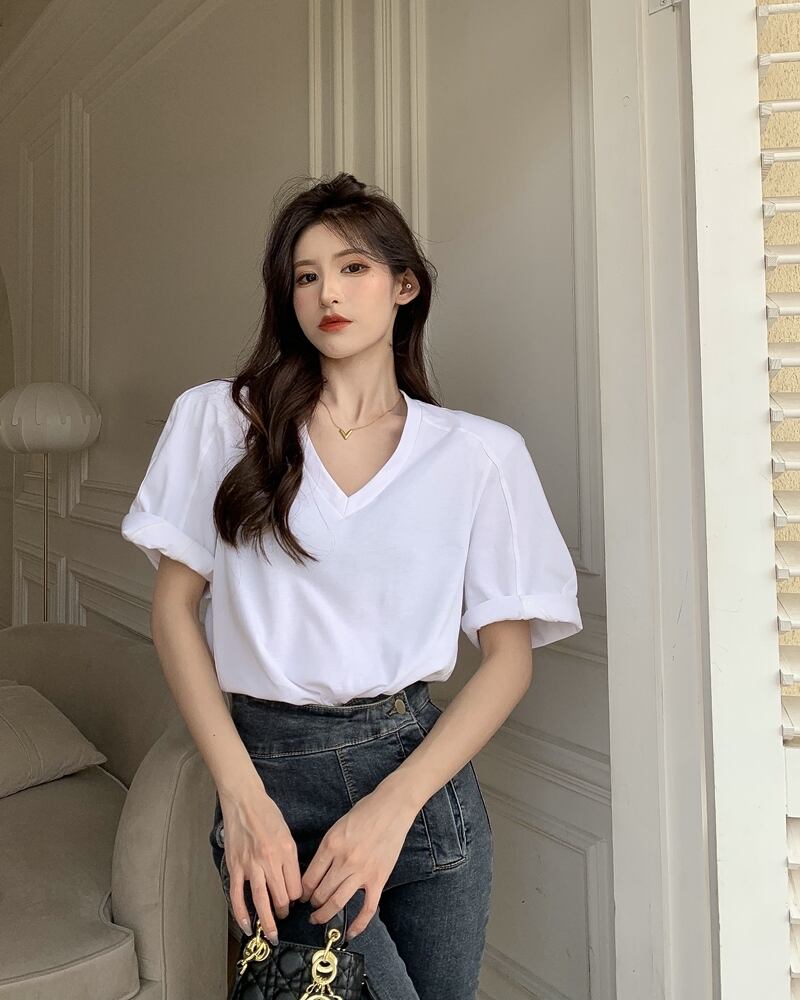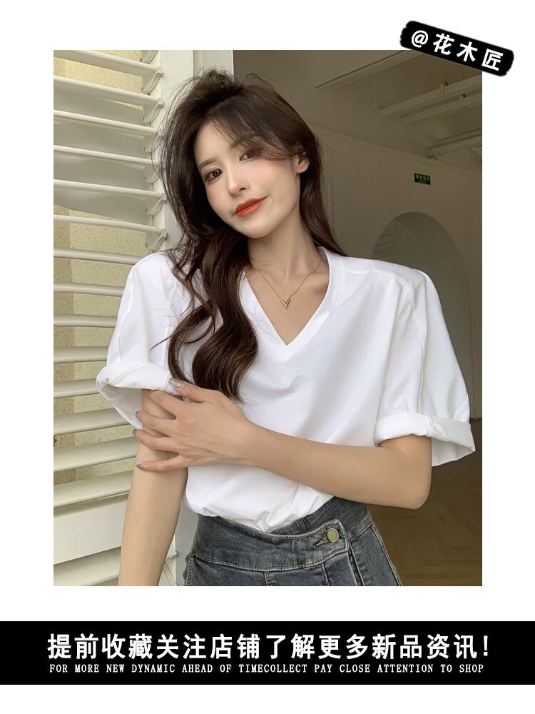 ホワイトTシャツ サマーVネックルーズトップス 夏物 10/5 秋冬 オータム ウインター ナチュラル mi4699260778296
