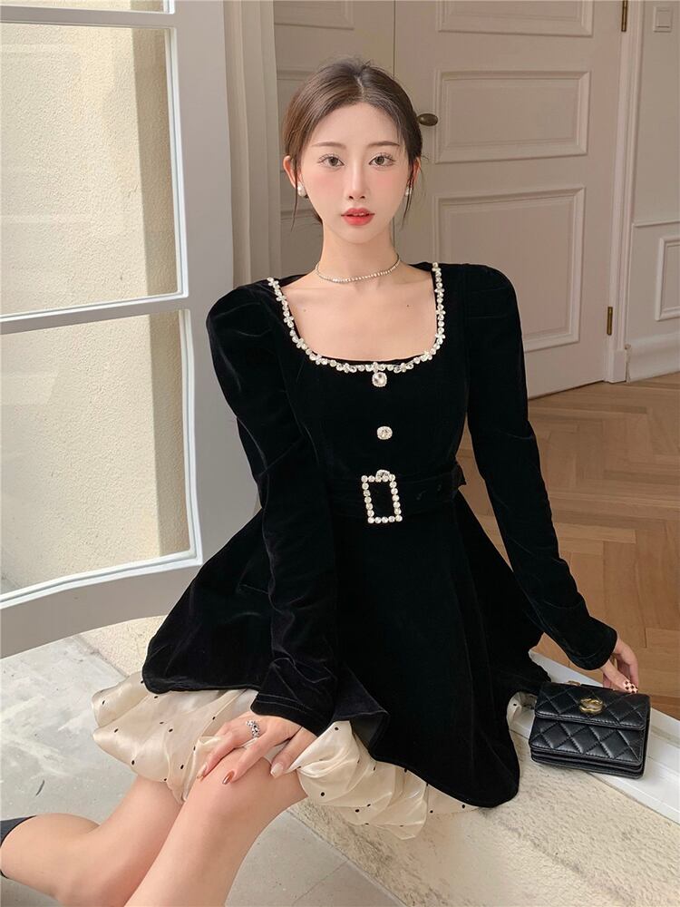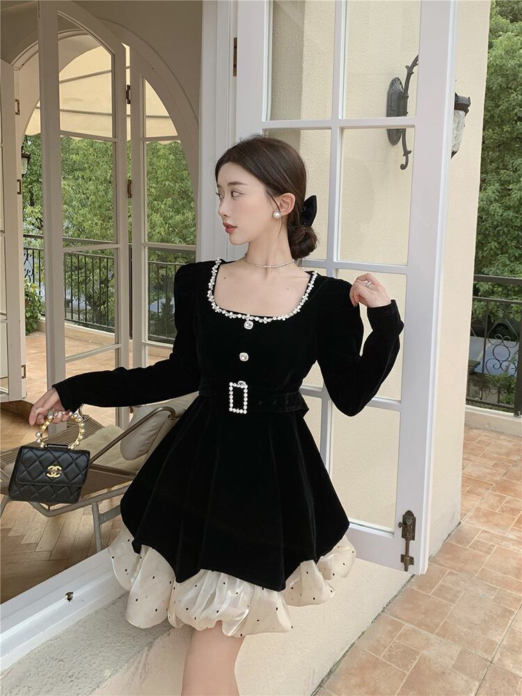 ベルベットドレス オータムウェストスカート ロング 秋物 10/5 秋冬 オータム ウインター ナチュラル mi46385745606