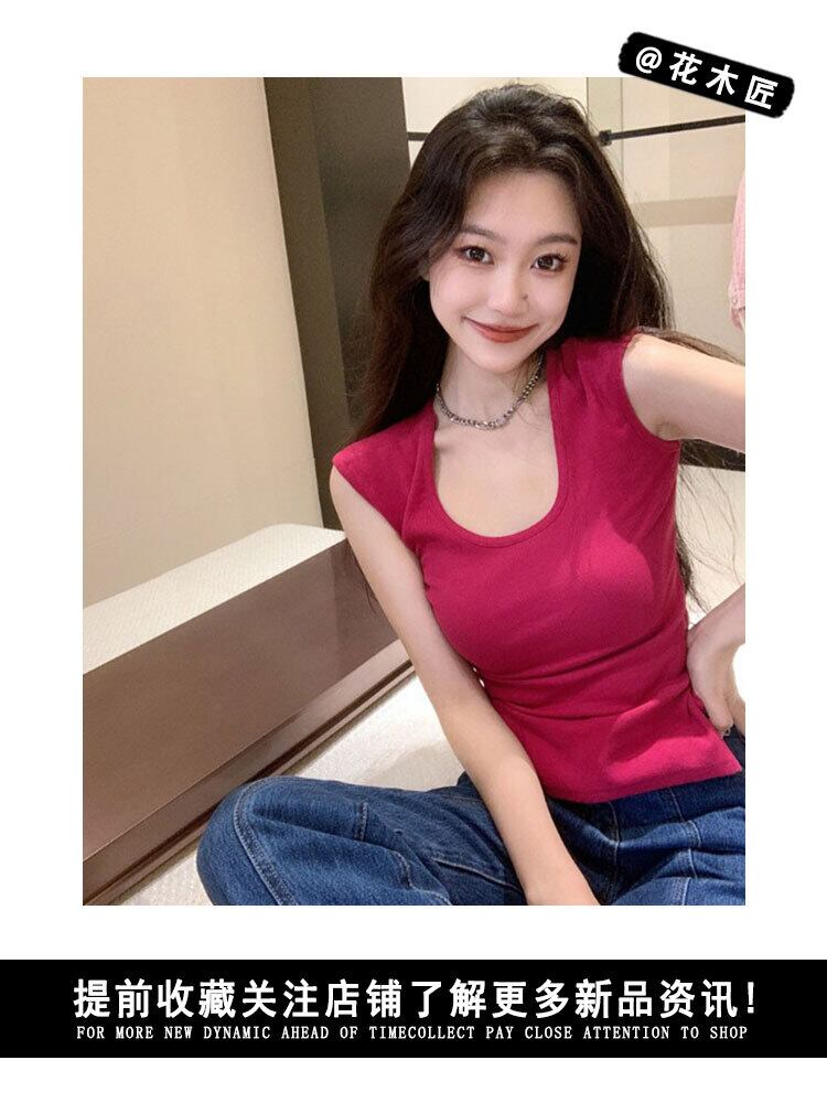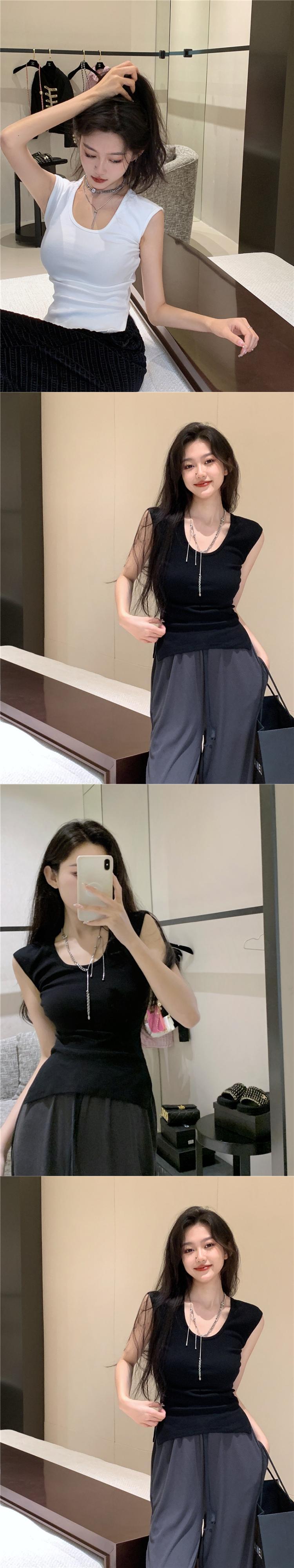 サマースリムフィット薄手スリットノースリーブトップス 大人ガーリー スウィート キュート カジュアル 夏物 10/5 秋冬 オータム ウインター ナチュラル mi4695886497024