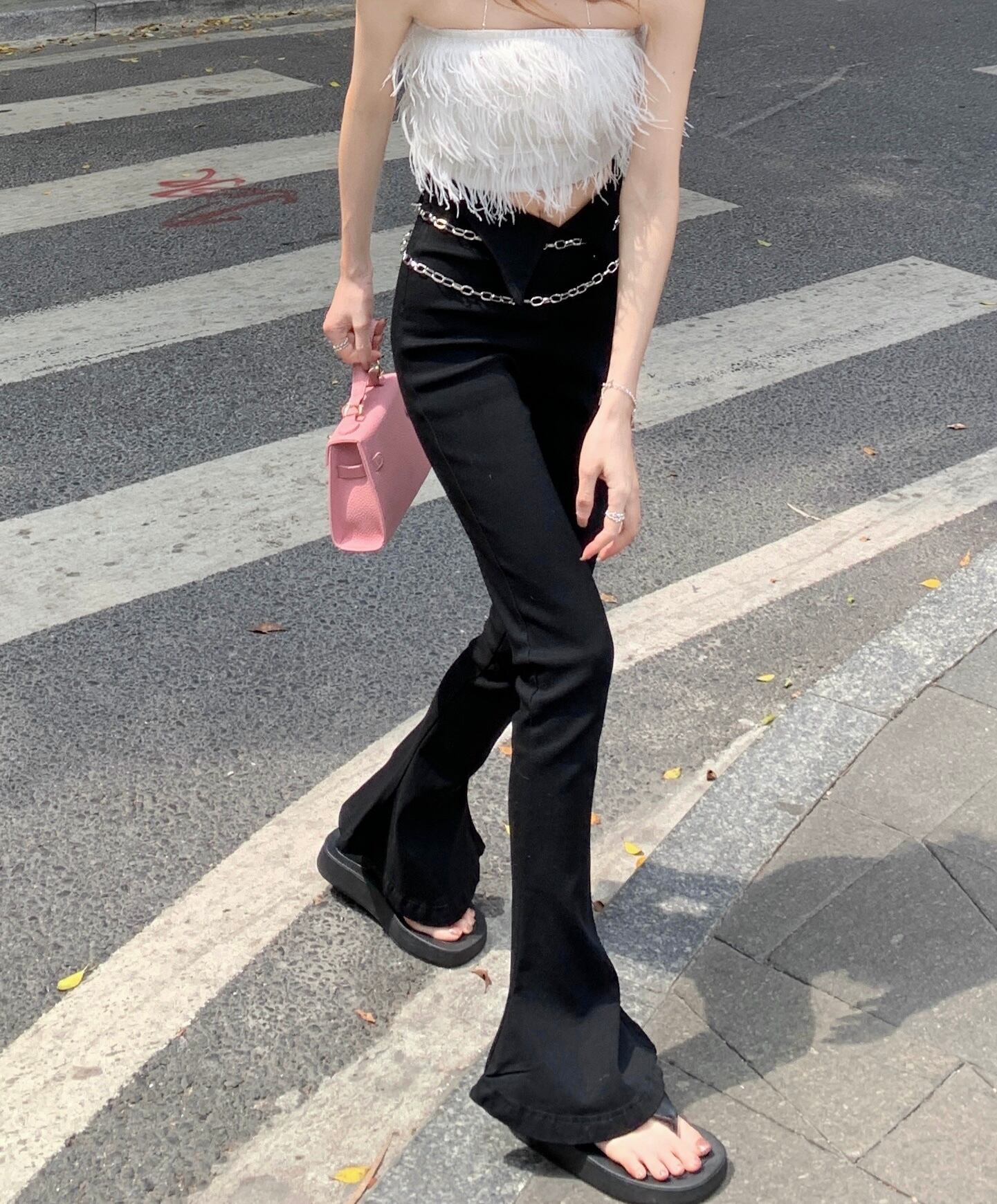 チェーン ブラックカジュアルパンツ オータムハイウェストウェスト薄手 レッド 秋物 10/5 秋冬 オータム ウインター ナチュラル mi4651399692816