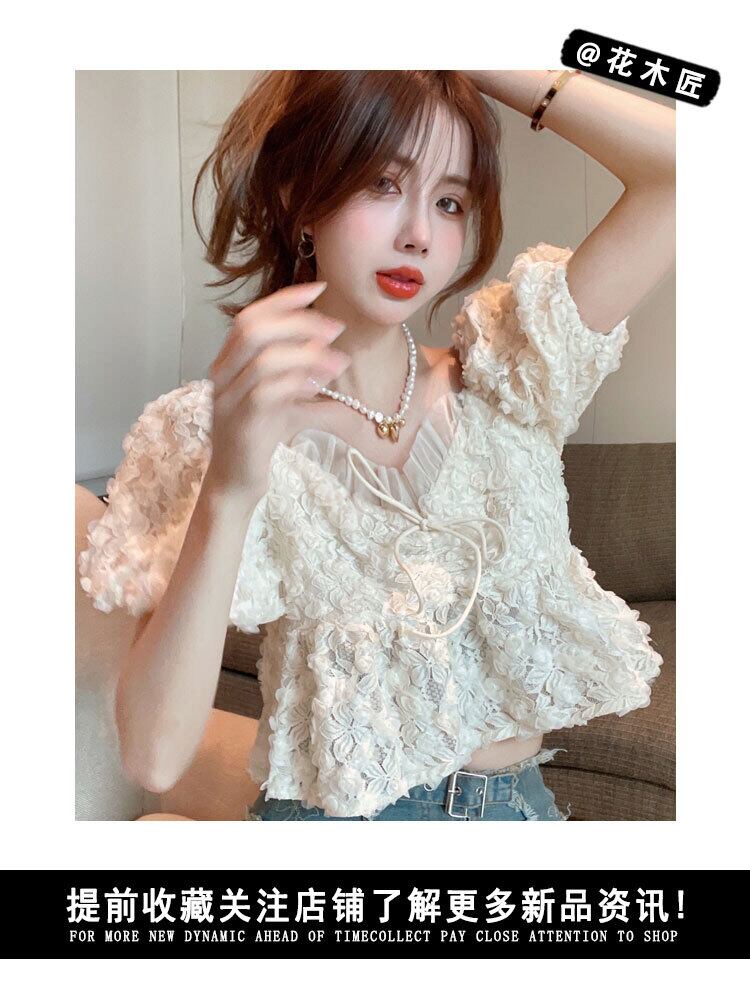 Flowerデザイン メッシュショートシャツ サマースリムトップス 夏物 フラワーデザイン 10/5 秋冬 オータム ウインター ナチュラル mi4616898191373