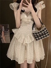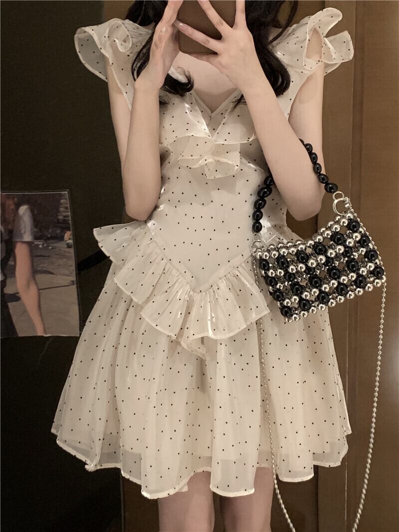 水玉ラッフルドレス サマーリボンウェストスカート 夏物 10/5 秋冬 オータム ウインター ナチュラル mi465416019214