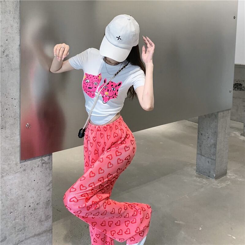色:ホワイトTシャツシングルピース,ラブパンツワンピース