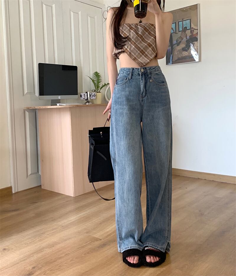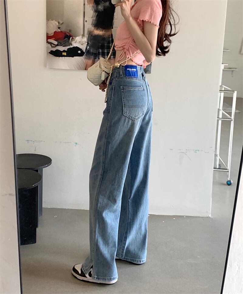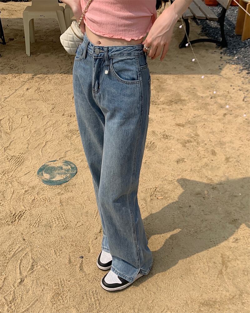 スリットジーンズ ルーズハイウェスト薄手パンツ 10/5 秋冬 オータム ウインター ナチュラル mi4649438137082