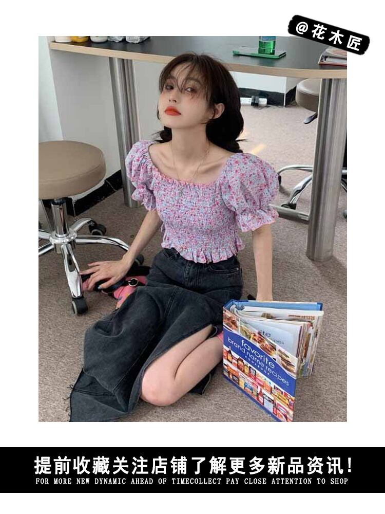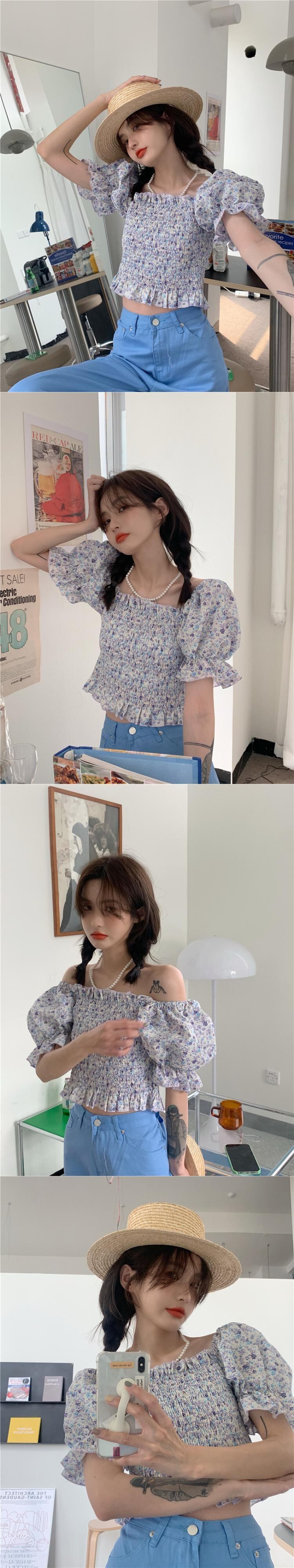 フローラルスリーブシャツ サマーカラープリーツウェストショートトップス 大人ガーリー スウィート キュート カジュアル 夏物 花柄 スクウェア 10/5 秋冬 オータム ウインター ナチュラル mi4647543803206