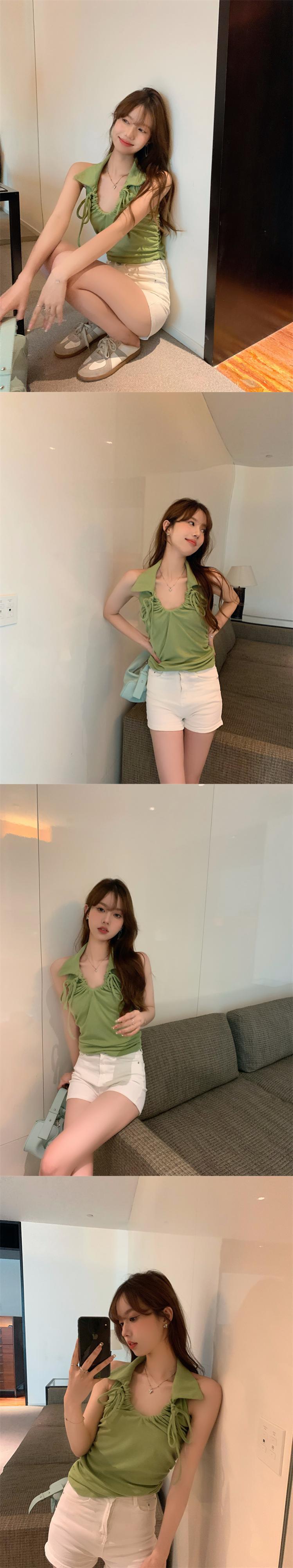 ギャザーホルターサマー薄手グリーントップス 夏物 10/5 秋冬 オータム ウインター ナチュラル mi4626816912134