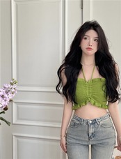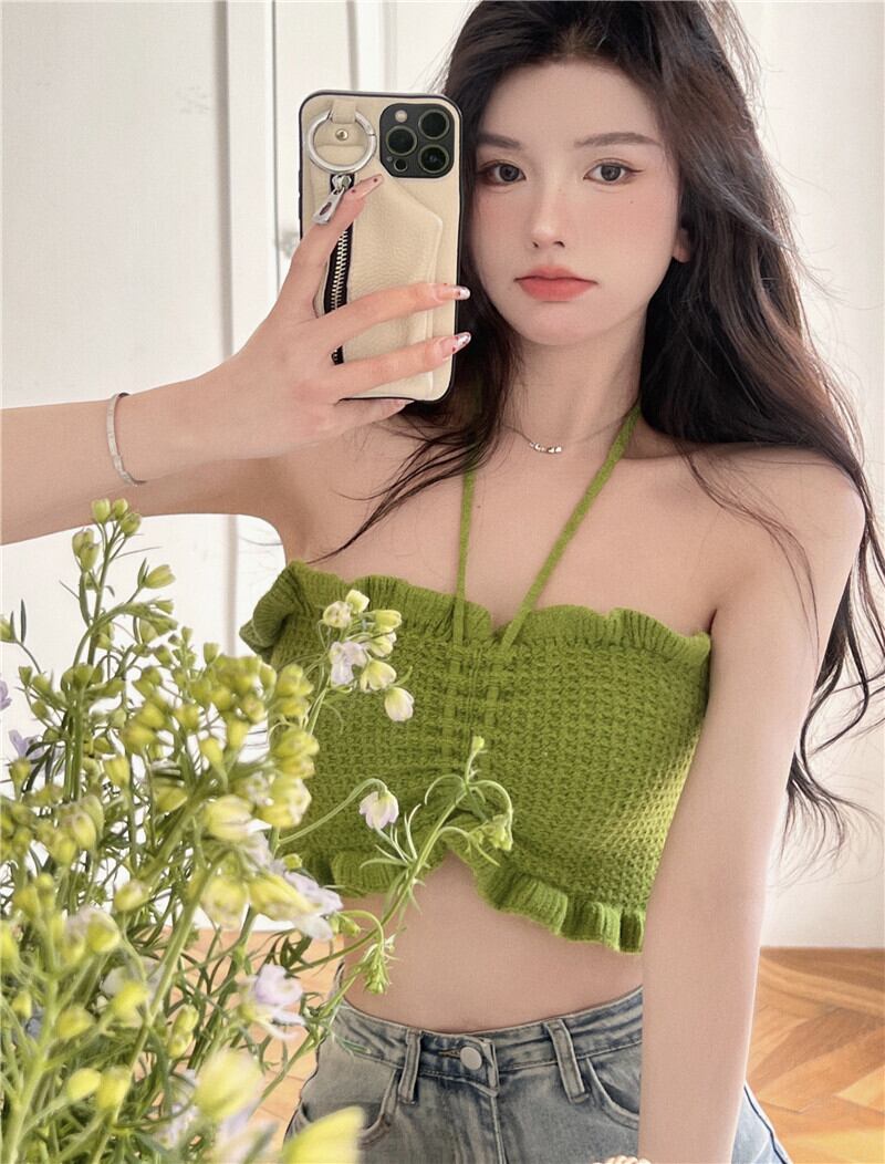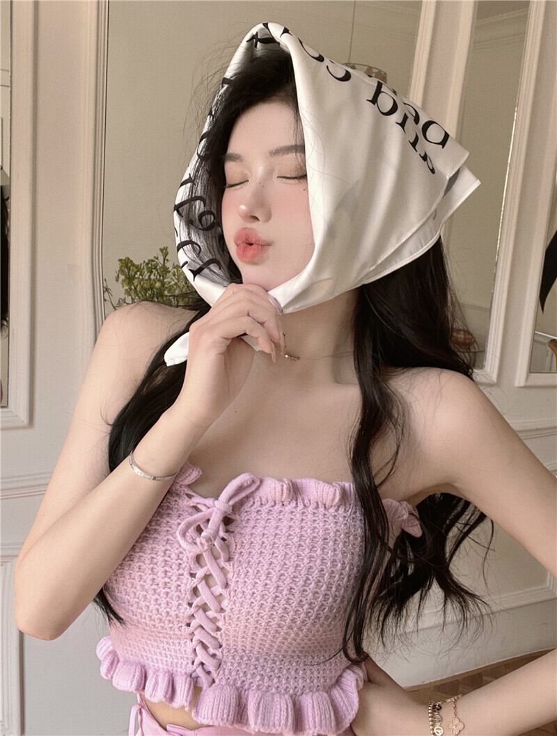 スタイルレースホルターサマースリムショートトップス ピンク 夏物 10/5 秋冬 オータム ウインター ナチュラル mi4693628383980