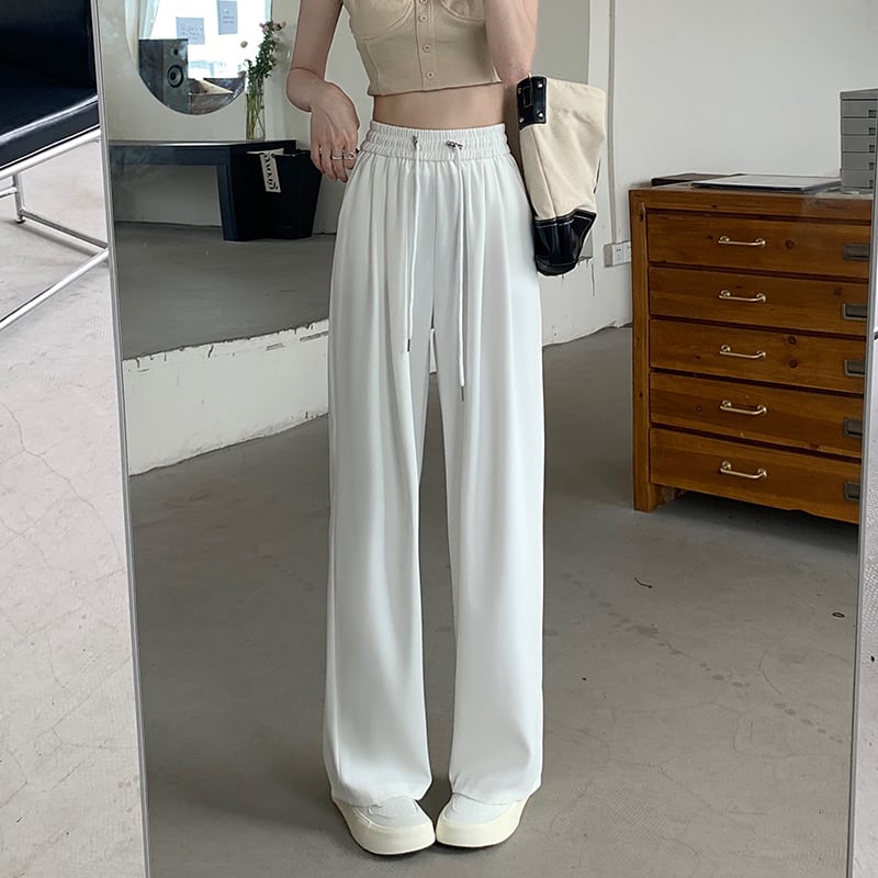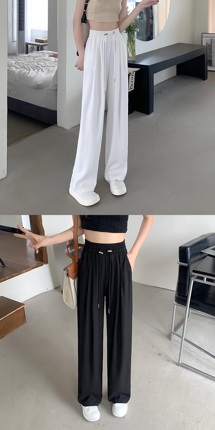 ブラックワイドレッグパンツ ハイウェストウェストスタイルギャザースリムルーズカジュアル ワイドパンツ 10/5 秋冬 オータム ウインター ナチュラル mi4688618857451