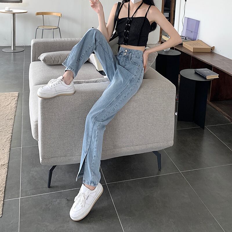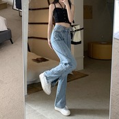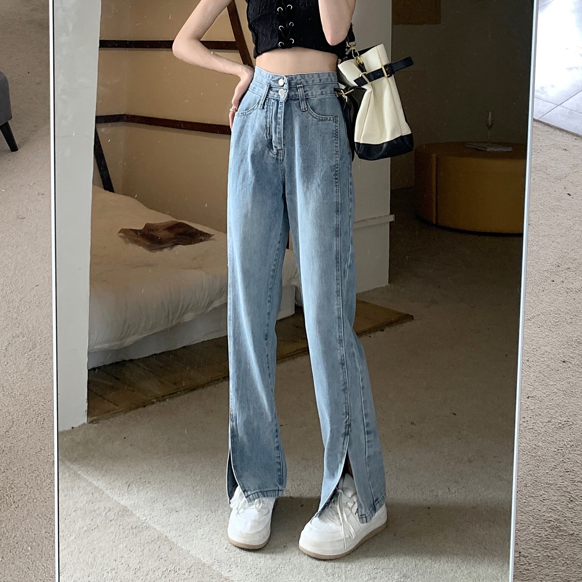 スリットジーンズ オータムハイウェスト薄手ルーズパンツ レッド ストリート 秋物 10/5 秋冬 オータム ウインター ナチュラル mi4685965785392