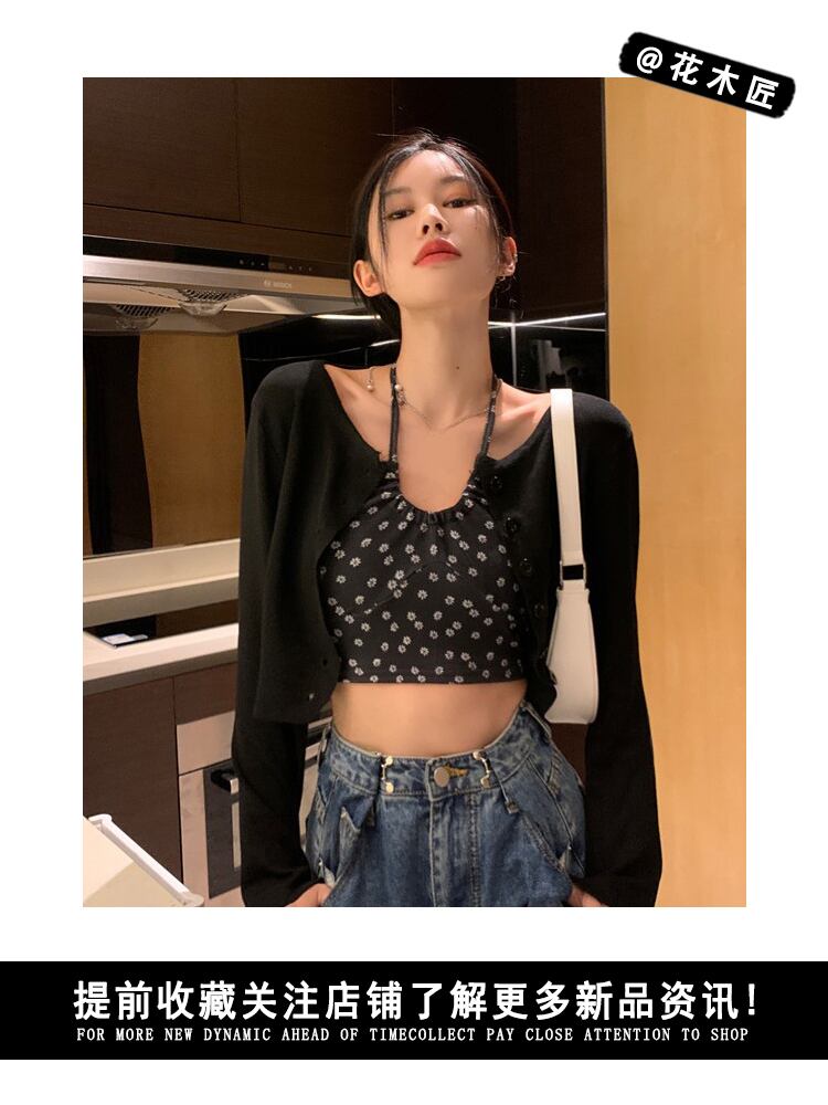 フローラルホルターオータムバックスリムクロップドショートトップス 大人ガーリー スウィート キュート カジュアル 秋物 花柄 10/5 秋冬 オータム ウインター ナチュラル mi4639932379421