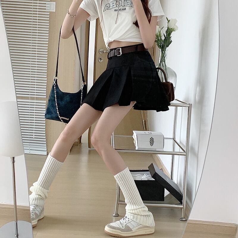 スタンダードカラープリーツスカート サマーハイウェストウェスト薄手Aライン レトロ 夏物 10/5 秋冬 オータム ウインター ナチュラル mi4646236732502
