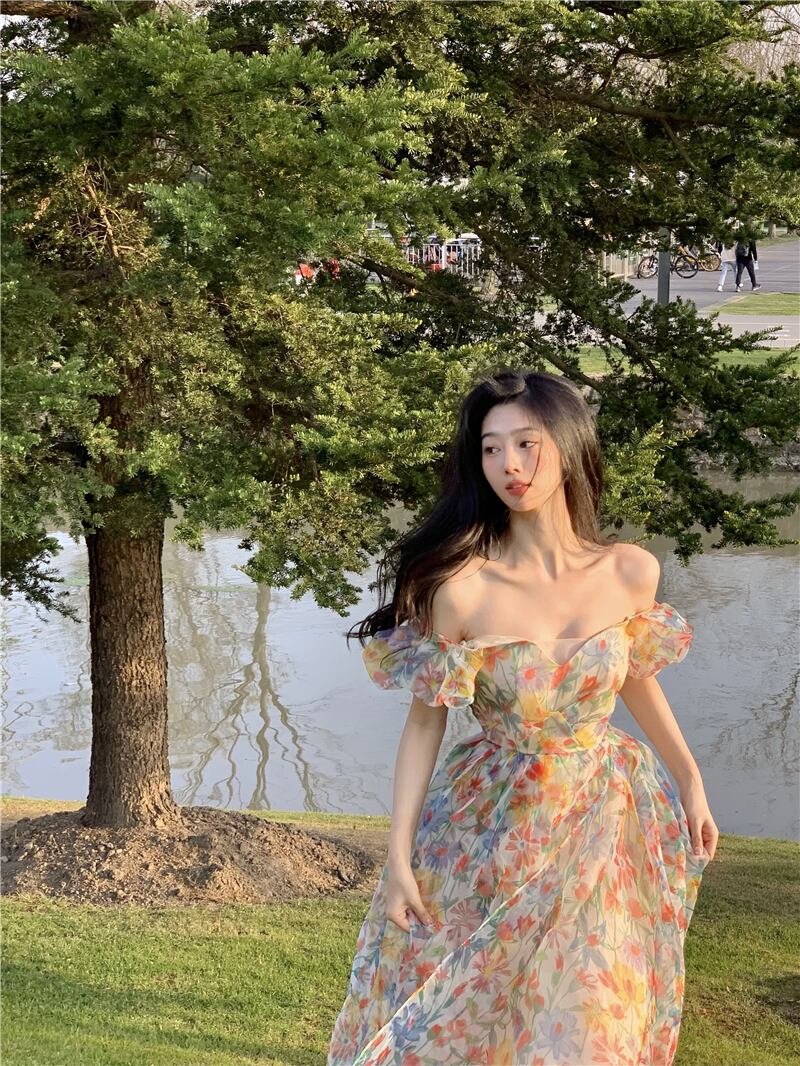 フローラルドレス サマーバックウェスト薄手スカート 夏物 花柄 ピュア 10/5 秋冬 オータム ウインター ナチュラル mi466885497110