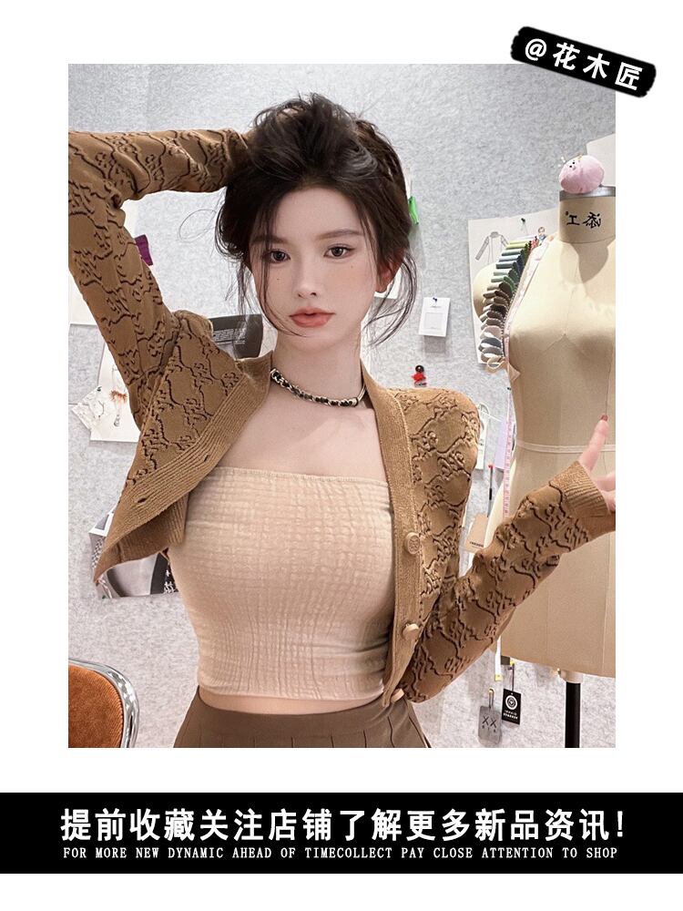 色:キャメルカーディガンワンピース,キャメルプリーツスカート,ベストチューブトップワンピース