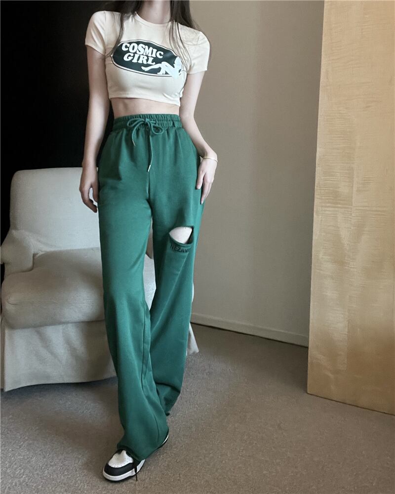 色:アプリコットTシャツワンピース,ホワイトTシャツシングルピース,緑のズボン,黒いズボン