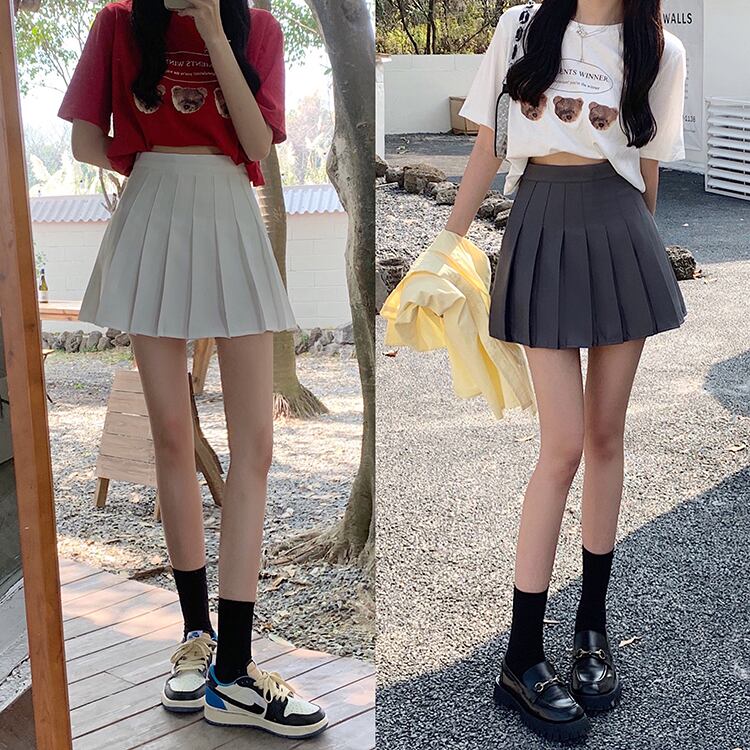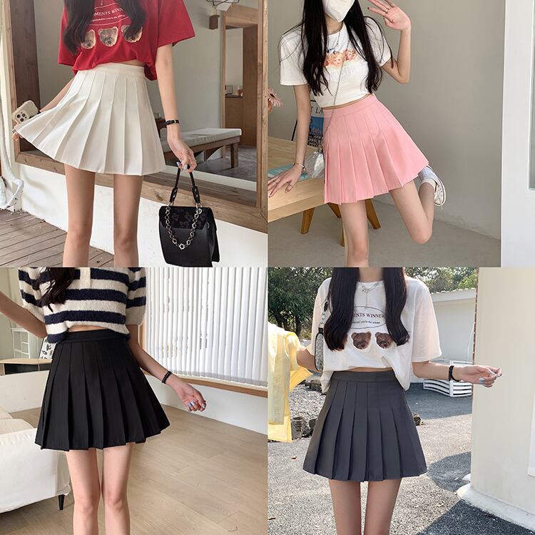 ブラックプリーツスカート ハイウェストサマー薄手Aライン レッド 夏物 10/5 秋冬 オータム ウインター ナチュラル mi4669769355179