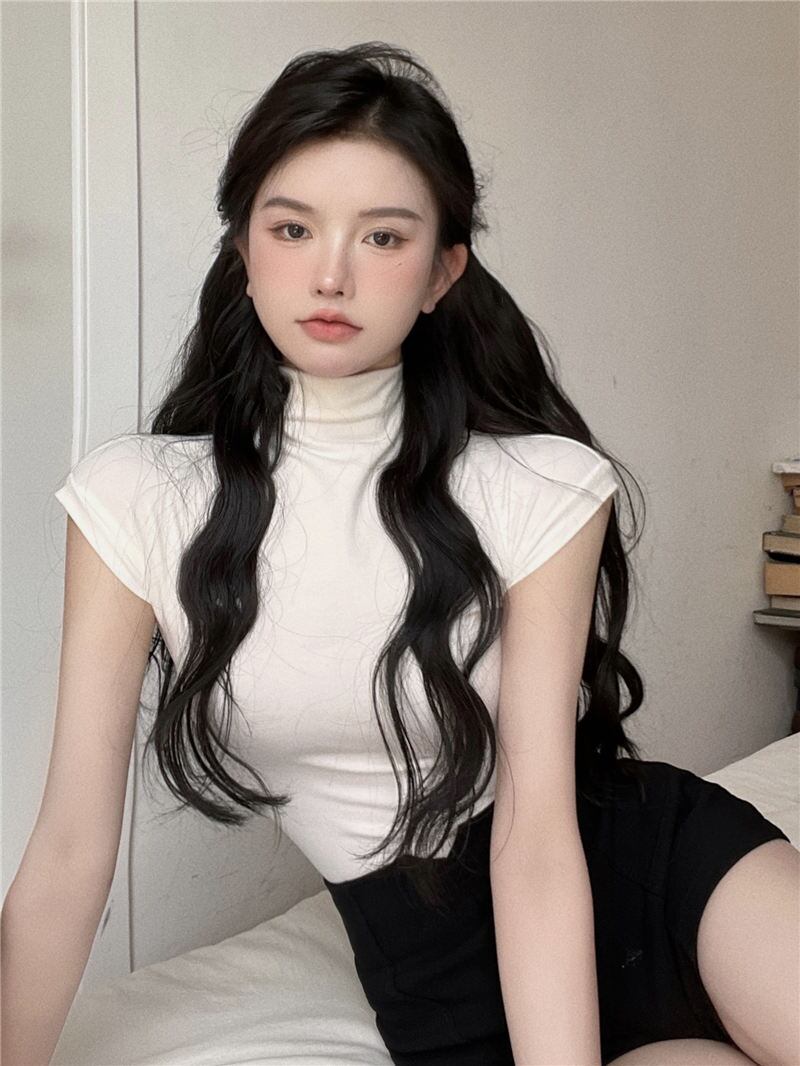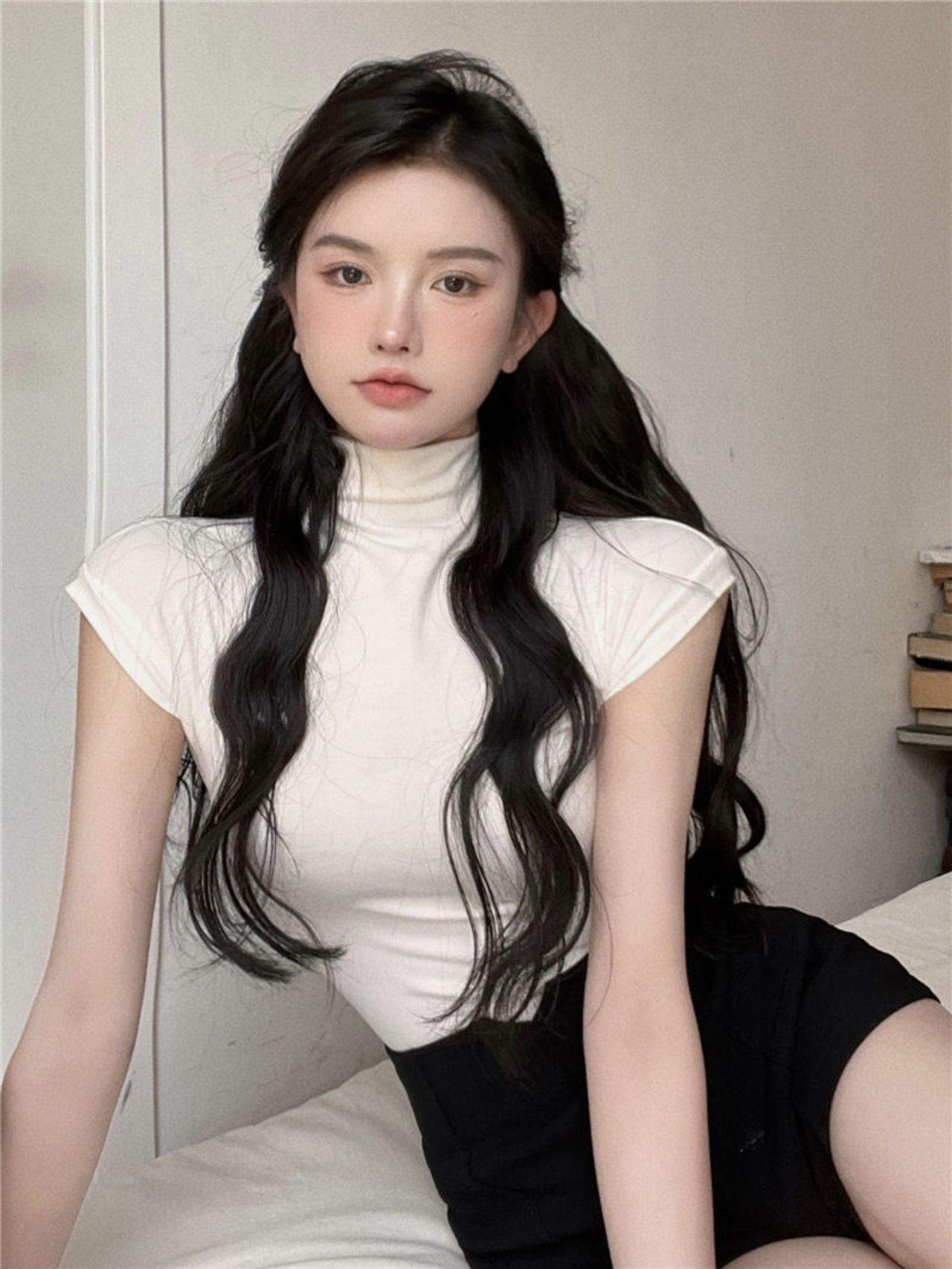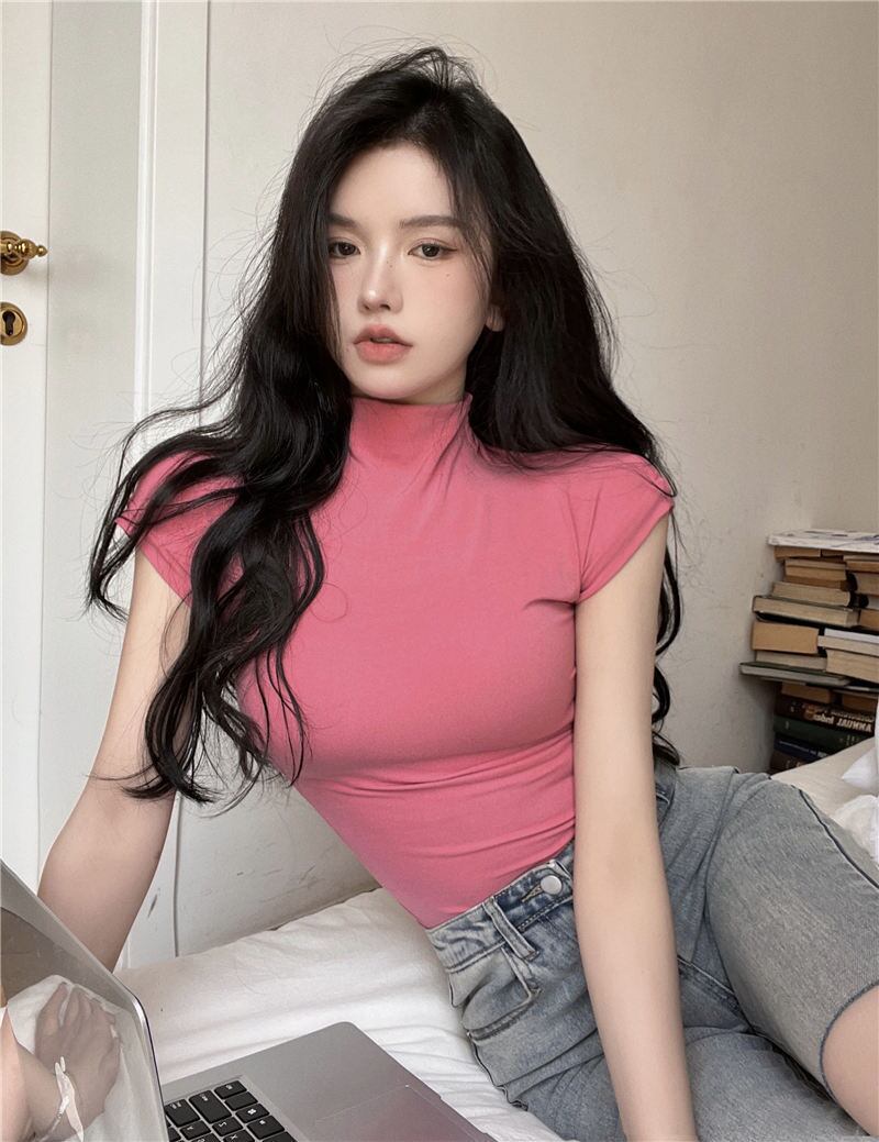 ソリッド カラースタイルTシャツ サマースリムトップス 夏物 ソリッドカラー 10/5 秋冬 オータム ウインター ナチュラル mi4612752298396