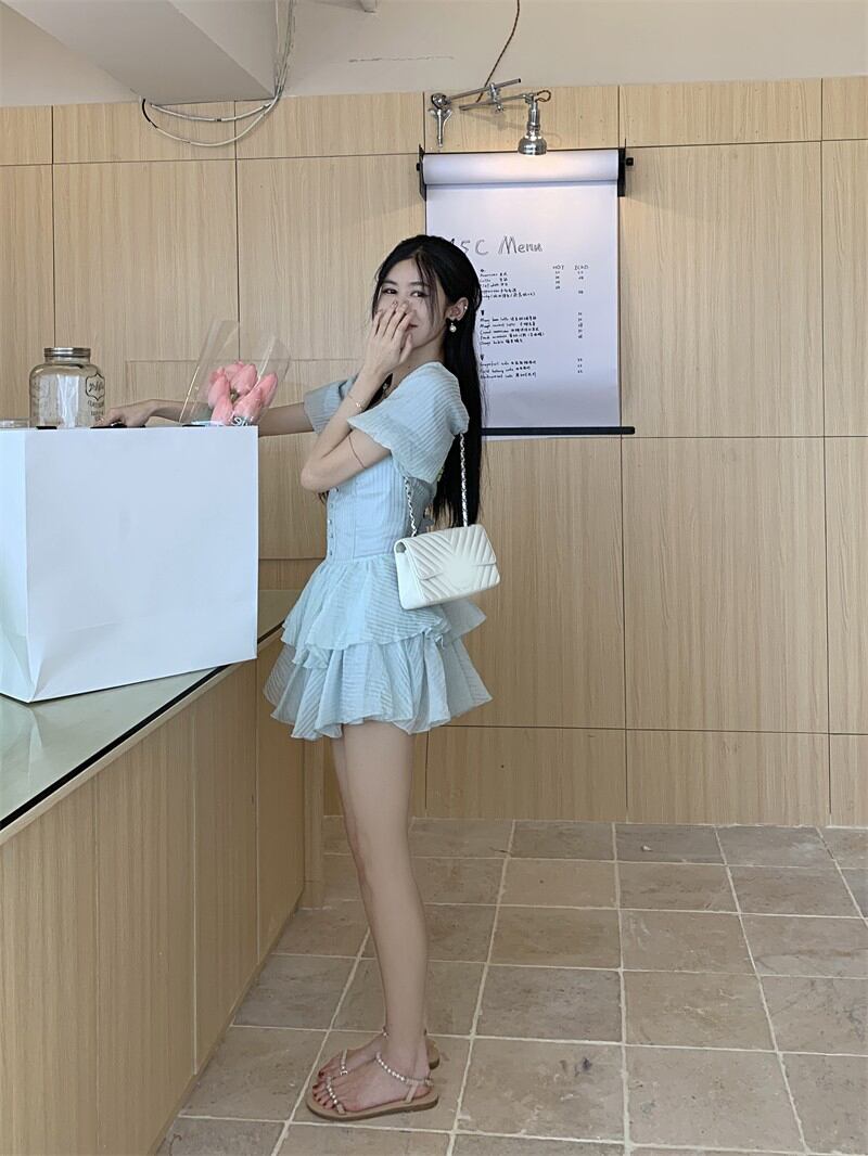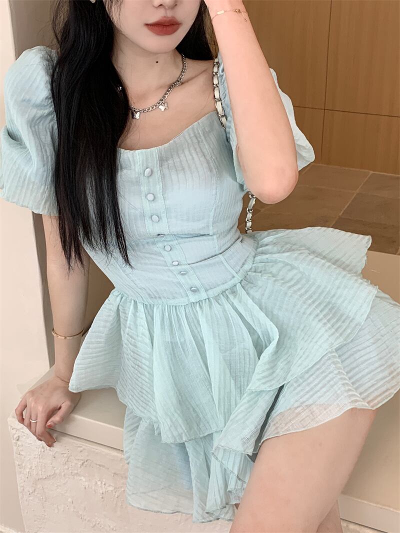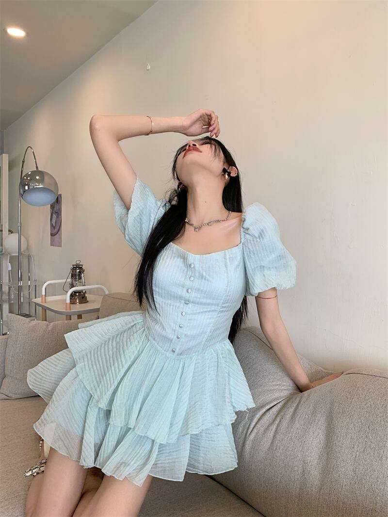 スリーブドレス サマーウェストAラインスカート 大人ガーリー スウィート キュート カジュアル 夏物 スクウェア 10/5 秋冬 オータム ウインター ナチュラル mi462934209777
